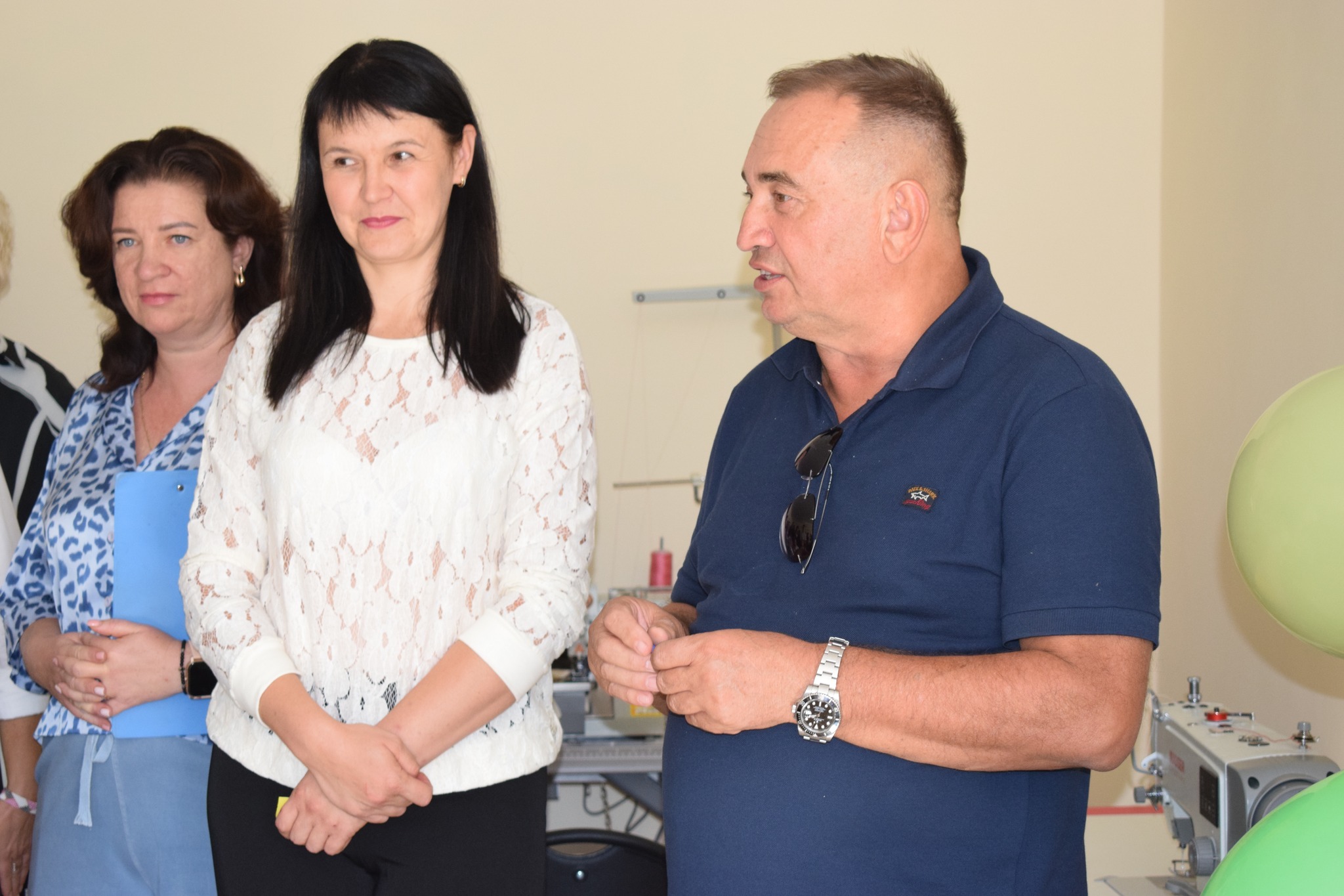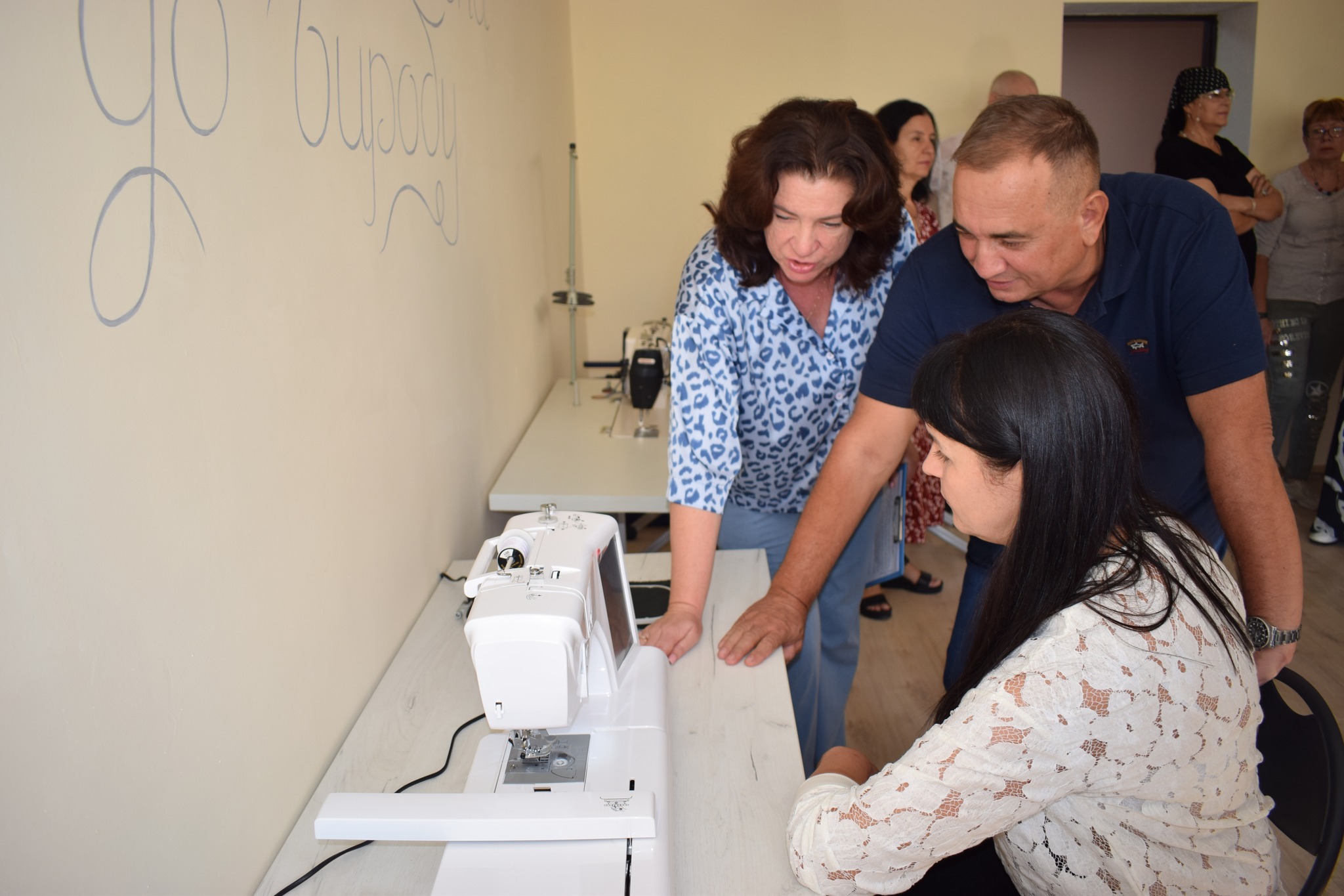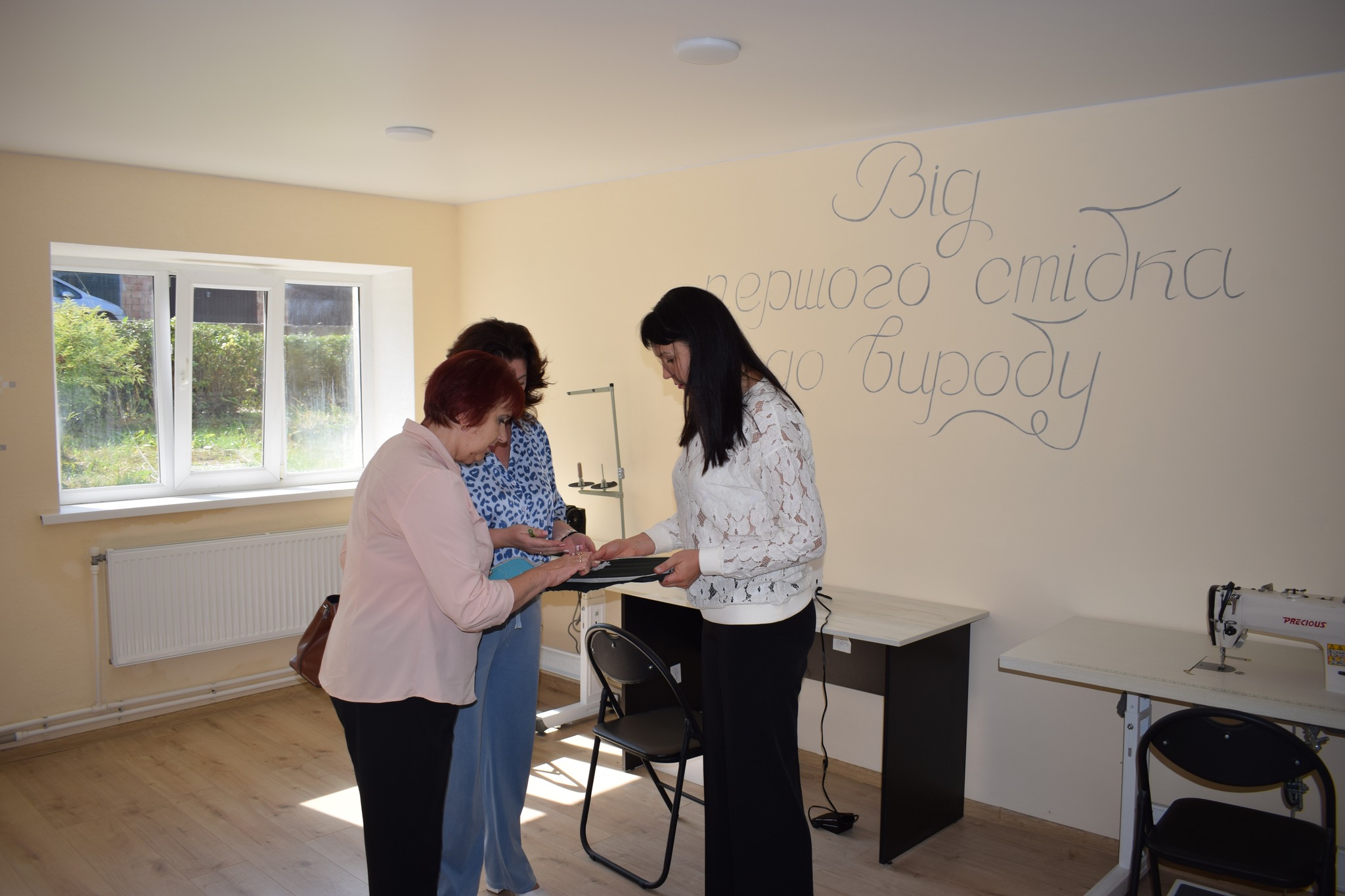 У вигляді подарунка міський голова Василь Козак та голова ГО «Пошук інновацій» Інна Яцишена презентували для новоствореного простору для шиття ще одну швейну машину та маркери для тканин.