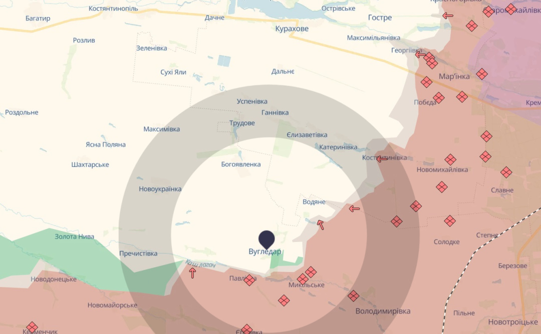 «Зараз росіяни намагаються через Пречистівку з напрямком на Новоукраїнку закрити ще й західний шлях. У такому випадку наші війська у Вугледарі зможуть отримувати постачання виключно з Богоявленки», – додав пан Коваленко.