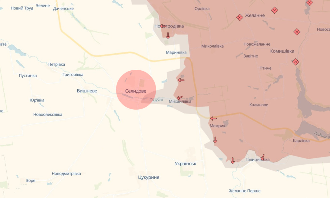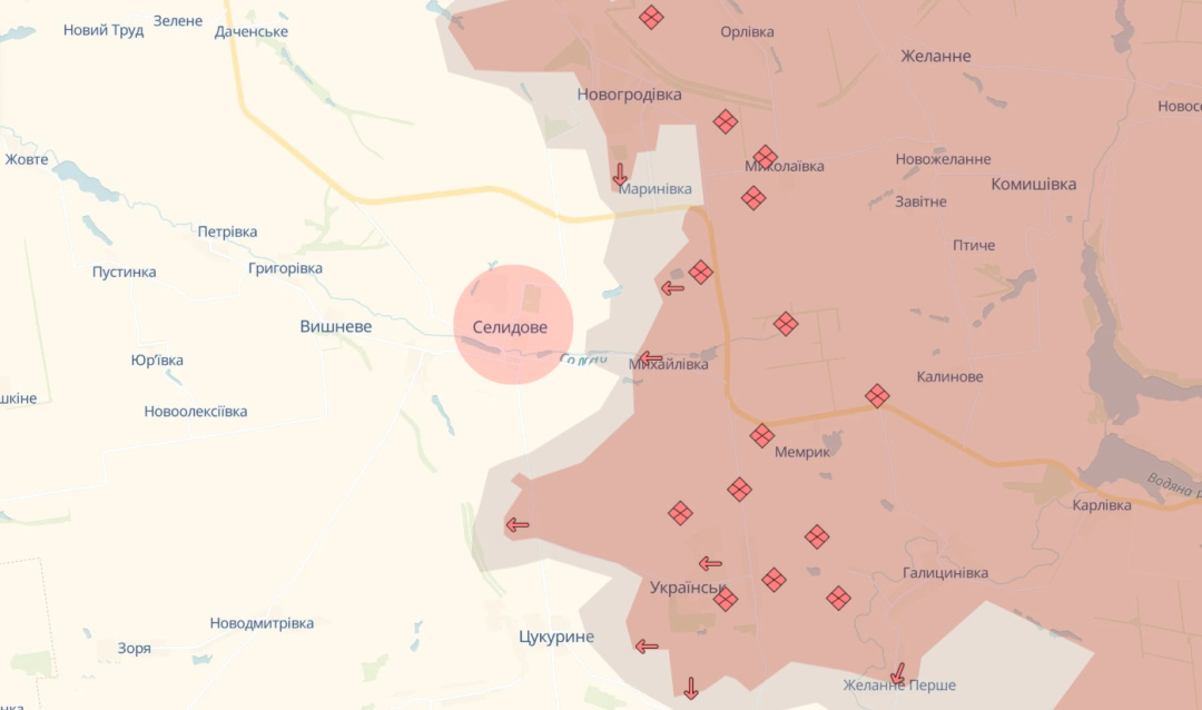 Північніше росіянам вдалося протиснути оборону між Гірником і Селидовим та захопити селище Українськ, що значно ускладнює оборону Селидового з півдня і південного сходу.