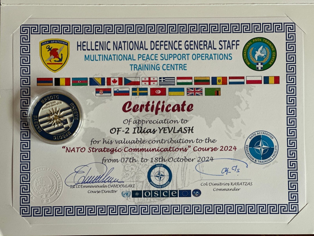 Представник Командування Повітряних Сил в межах курсу з обміну досвідом, який відбувся в місті Кілкіс (Греція), поінформував представників 16 країн-членів НАТО про особливості організації стратегічних комунікацій під час війни.