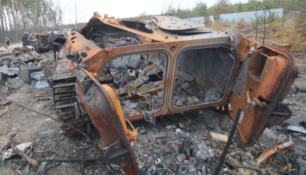 Крім того, Сили оборони знищили 9382 (+17) російські танки, бойових броньованих машин ‒ 19092 (+33), артилерійських систем – 20632 (+46), РСЗВ – 1252 (+0), засобів ППО ‒ 999 (+0), літаків – 369 (+0), гелікоптерів – 329 (+0), БПЛА оперативно-тактичного рівня – 19111 (+38), крилатих ракет ‒ 2754 (+1), кораблів / катерів ‒ 28 (+0), підводних човнів ‒ 1 (+0), автомобільної техніки та автоцистерн – 29548 (+120), спеціальної техніки ‒ 3672 (+17).