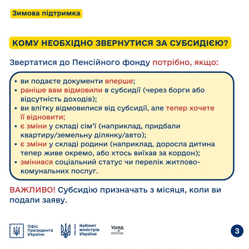 Тим, хто раніше не отримував субсидію і хоче оформити її вперше, потрібно звернутися до територіального відділення Пенсійного фонду України.