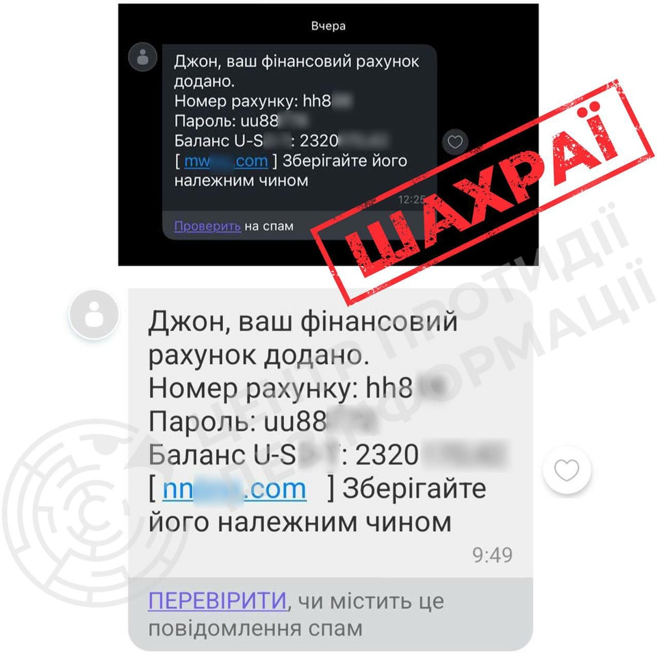 Центр протидії дезінформації повідомляє: у месенджерах українці почали отримувати повідомлення з невідомих номерів про нібито відкриття їхніх фінансових рахунків.