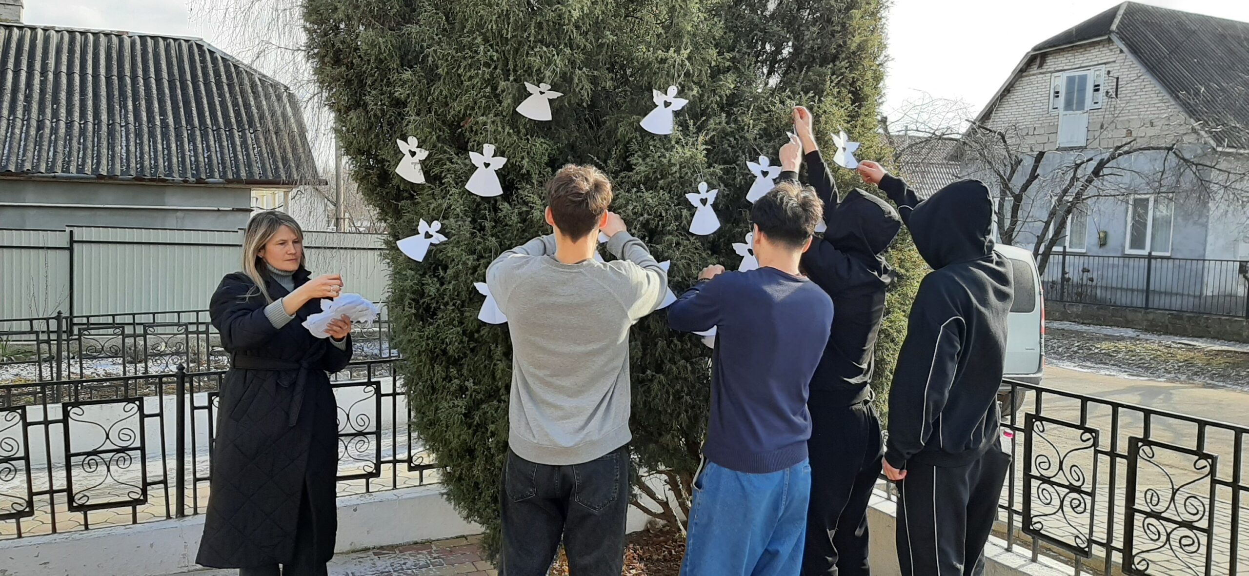 Учні та педагоги вшанували полеглих хвилиною мовчання, долучилися до виховних годин, перегляду документальних фільмів, створення тематичних стендів та артінсталяцій тощо. Символічним стало приєднання до XII Всесвітньої тихої акції «Ангели пам’яті – 2025»: білих паперових янголів, як символ світлої пам’яті, розмістили на деревах, щоб вони нагадували нам про тих, хто назавжди залишився у серцях українців.