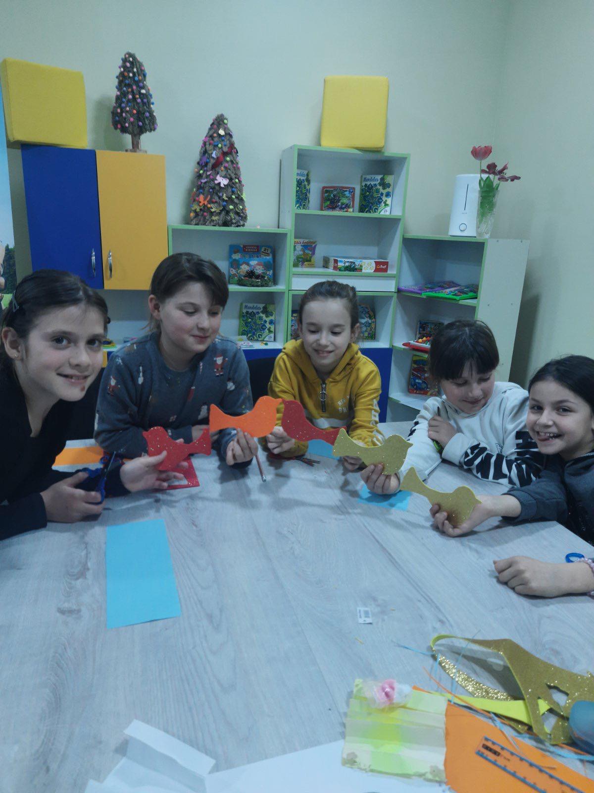 Учасники творчої майстерні «Креативні ручки», яка діє при Центрі життєстійкості, що функціонує на базі Центру надання соціальних послуг, взяли участь у майстер-класі з виготовлення пташок із кольорового паперу та фоамірану.