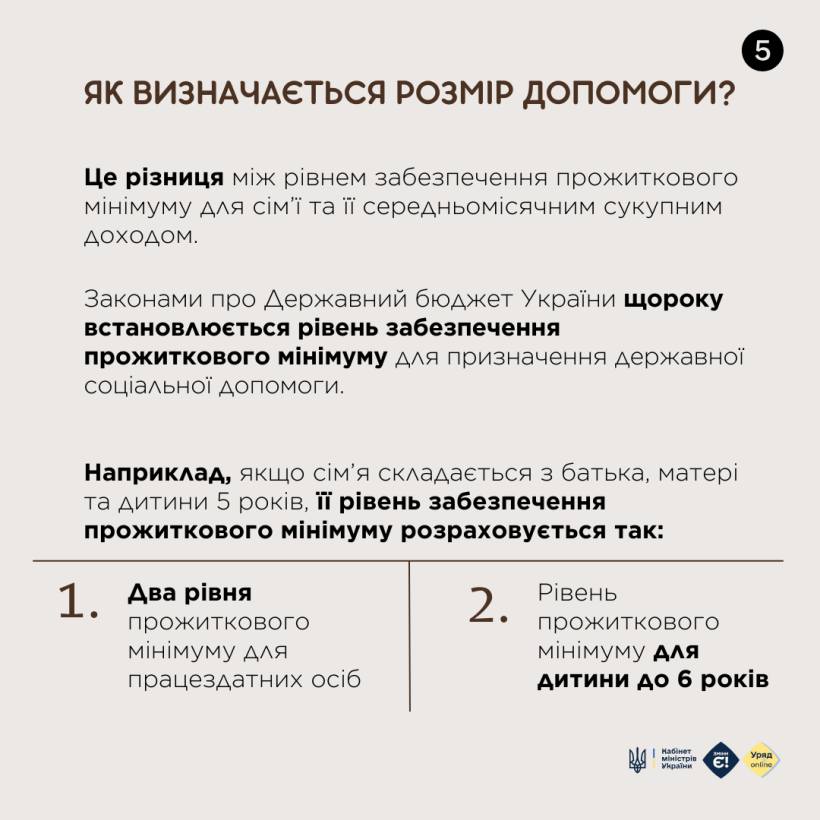 Виплату призначають на 6 місяців і розраховують залежно від складу сім’ї та доходів.