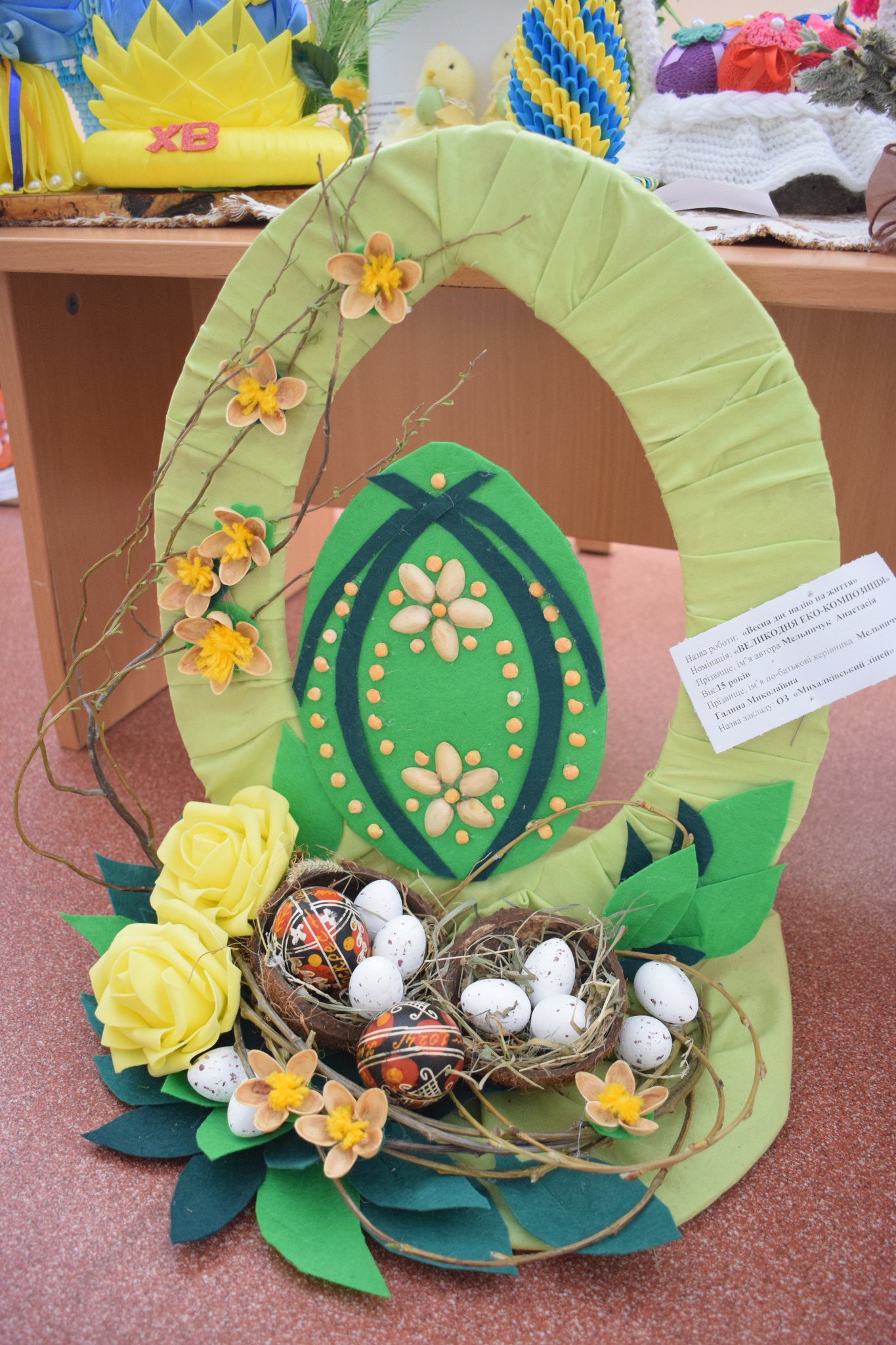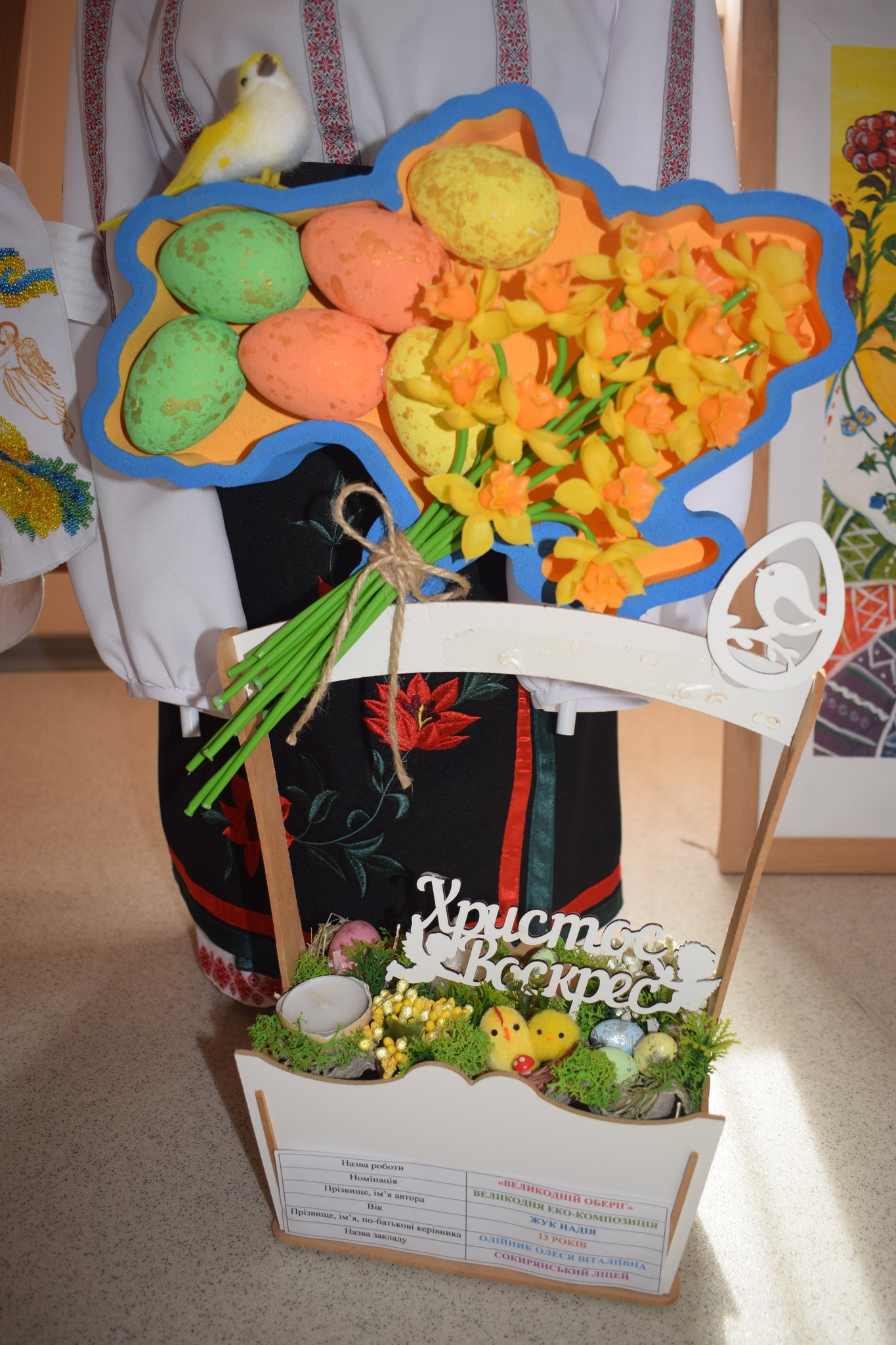 На виставці представлено оригінальні роботи, виконані у різних техніках — від розписаних писанок до художніх композицій і декоративно-прикладного мистецтва. Кожна з них — це щира дитяча емоція, творча фантазія та глибоке відчуття національної культури.
