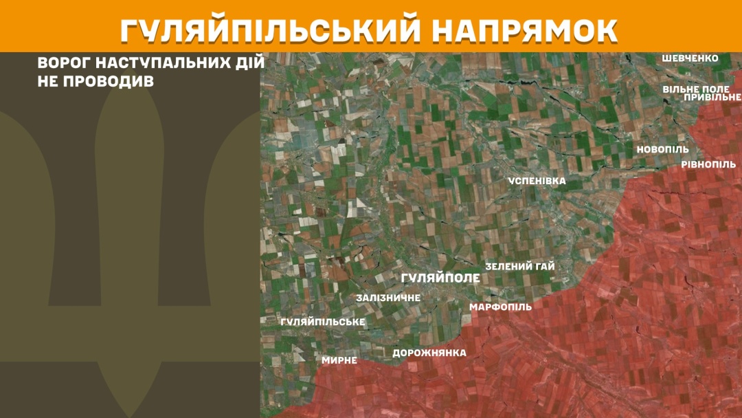 На Гуляйпільському та Придніпровському напрямках ворог наступальних дій не проводив.
