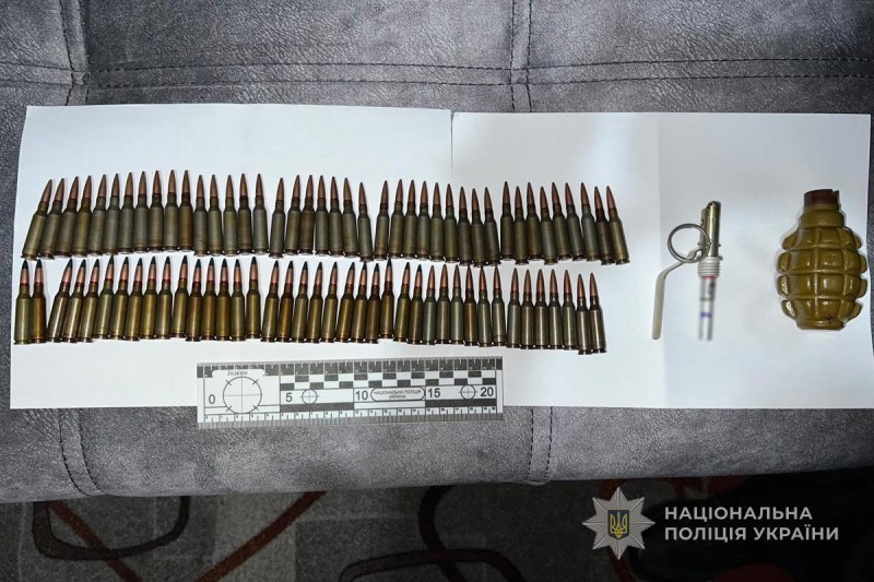 Під час проведення санкціонованого обшуку за місцем проживання 53-річого жителя Сокирянської громади поліцейські виявили та вилучили 81 набій і гранату з запалом, які чоловік зберігав без передбаченого законом дозволу.