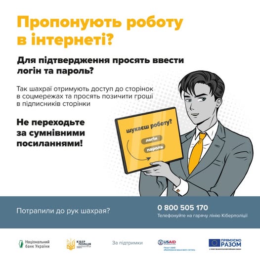 Правоохоронці вкотре закликають громадян не спокушатися на пропозиції легкого онлайн-заробітку. Не поспішайте виконувати вказівки незнайомців та не переказуйте гроші на невідомі рахунки.