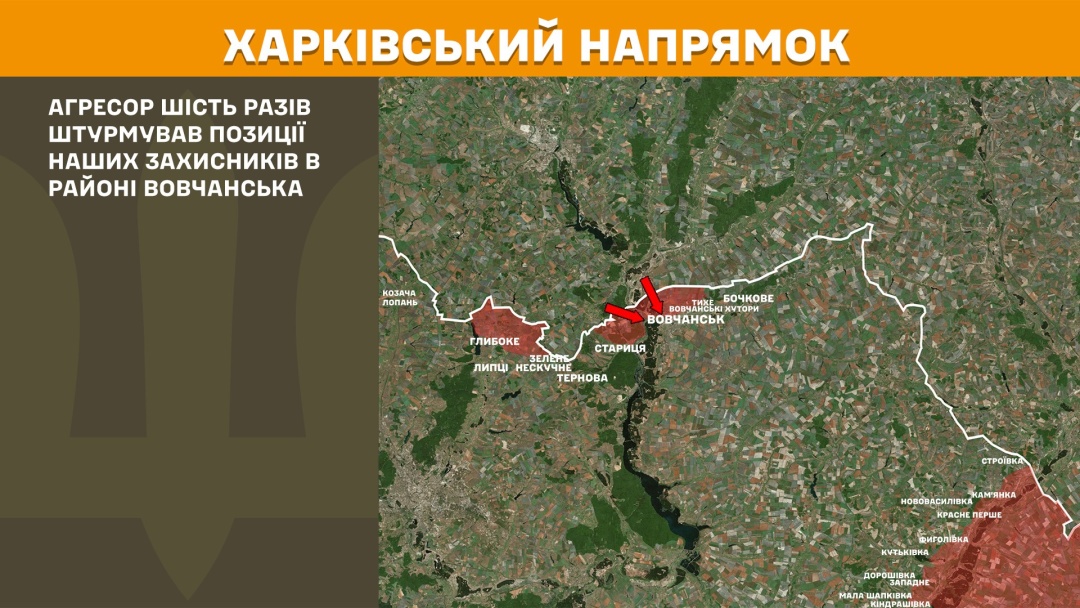 На Харківському напрямку армія РФ шість разів штурмувала позиції українських захисників в районі Вовчанська.