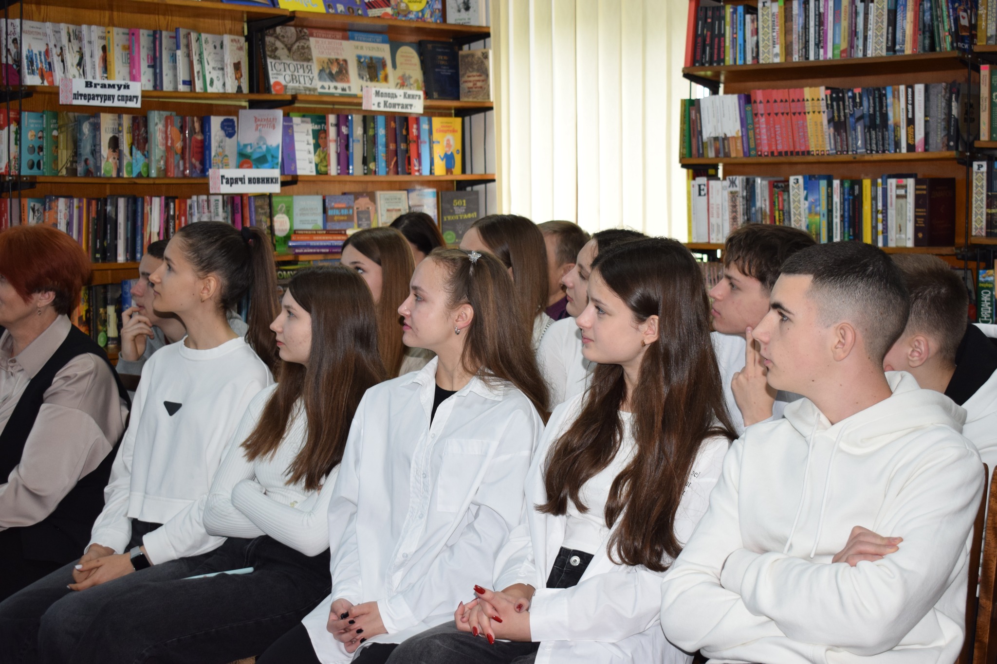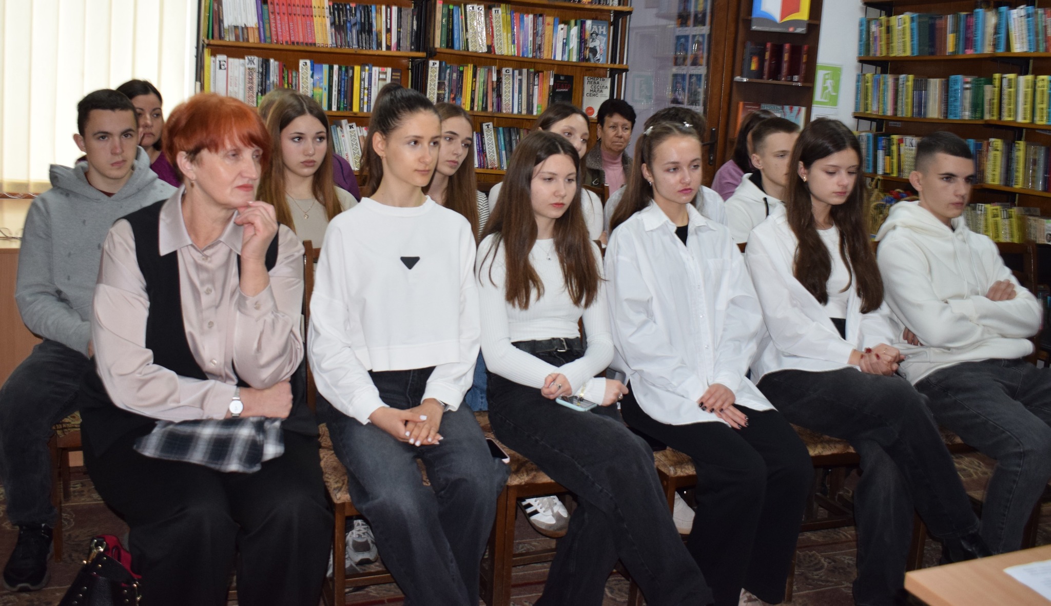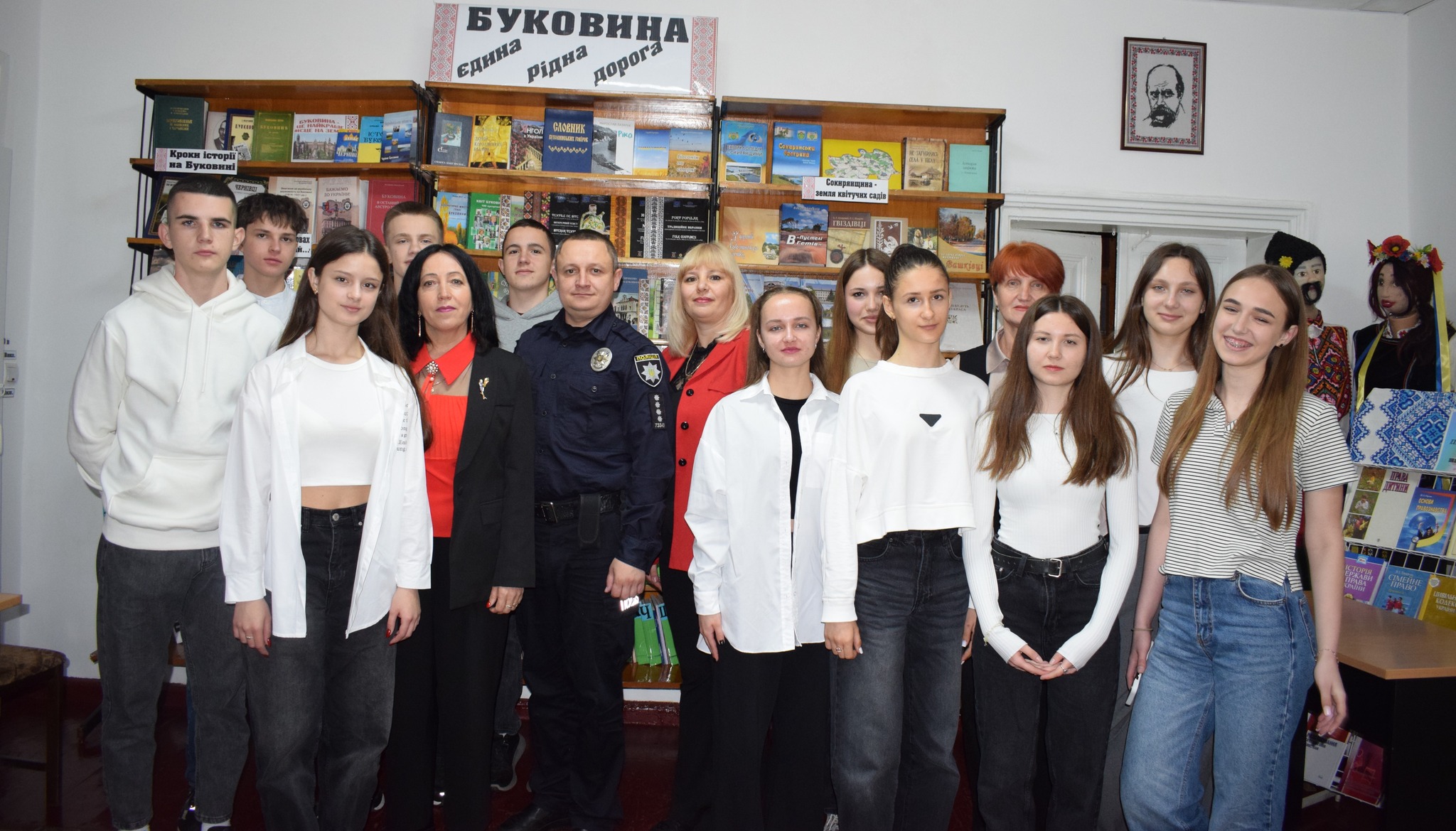 Учасниками зустрічі стали поліцейський офіцер громади Олег Томнюк, учні 10-А класу опорного закладу «Сокирянський ліцей №1» з класним керівником Валентиною Мельник та працівники бібліотеки.