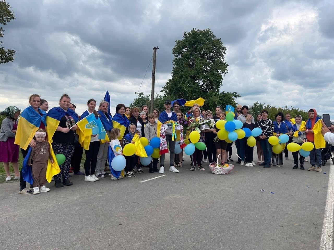 Жителі округу, малі та дорослі, вітали Павла на рідній землі, дякуючи за захист і подвиг.