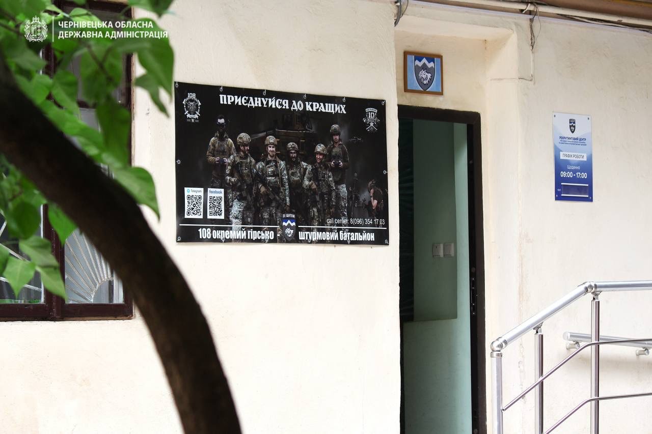 У центрі Чернівців запрацював перший в Україні рекрутинговий центр 108-го окремого гірсько-штурмового батальйону 10-ї окремої гірсько-штурмової бригади «Едельвейс». Це також перший рекрутинговий центр бригади загалом.