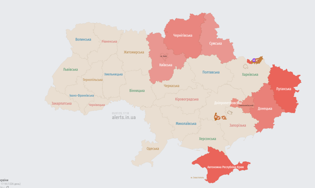 Раніше повітряну тривогу оголосили в низці областей. У Києві був відбій, про тривогу повідомили вже вдруге за вечір.