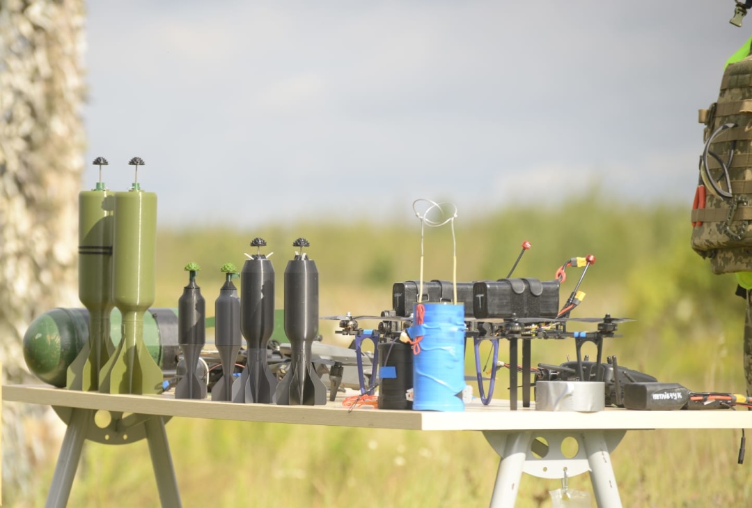 Пройшли демонстративні польоти з БПЛА літакового типу, ударних безпілотників мультироторного типу зі скиданням боєприпасів та ударних FPV-дронів з використанням оптоволоконної системи.