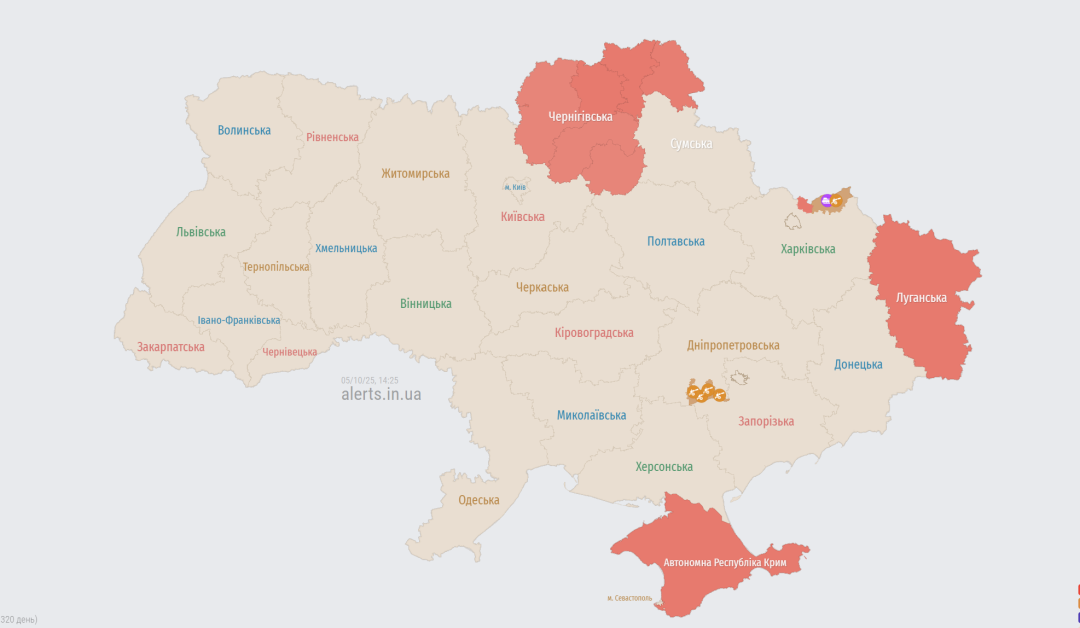 - Чернігівщина: кілька БпЛА на півночі області курсом на Сновськ, Конотоп.