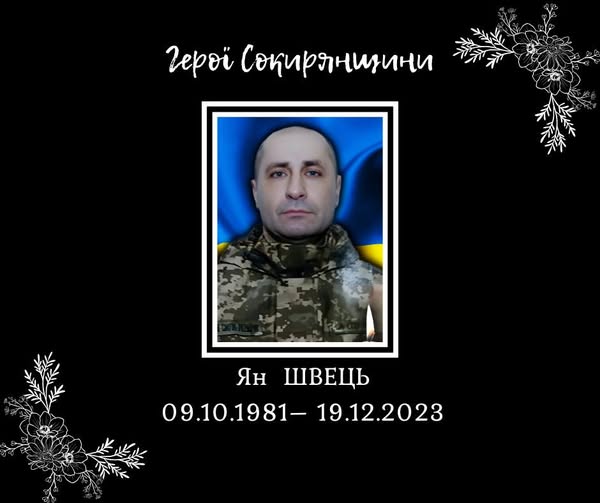 Із вдячністю, у скорботі згадуємо у земний день народження Захисника України Яна Швеця