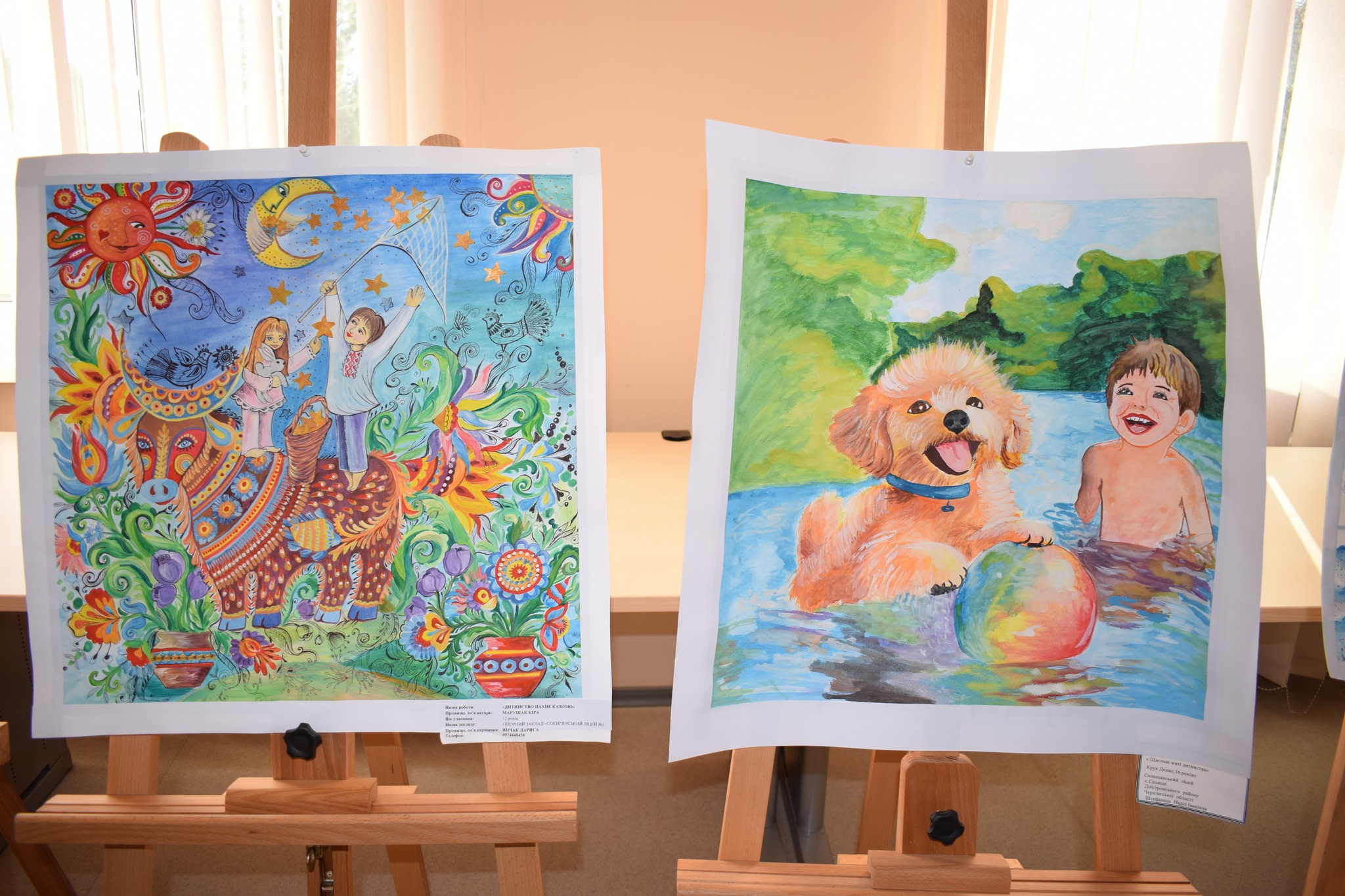 Роботи виконані у різних техніках образотворчого мистецтва — живопис, графіка, батик, — і кожна з них передає неповторне бачення дитиною навколишнього світу.