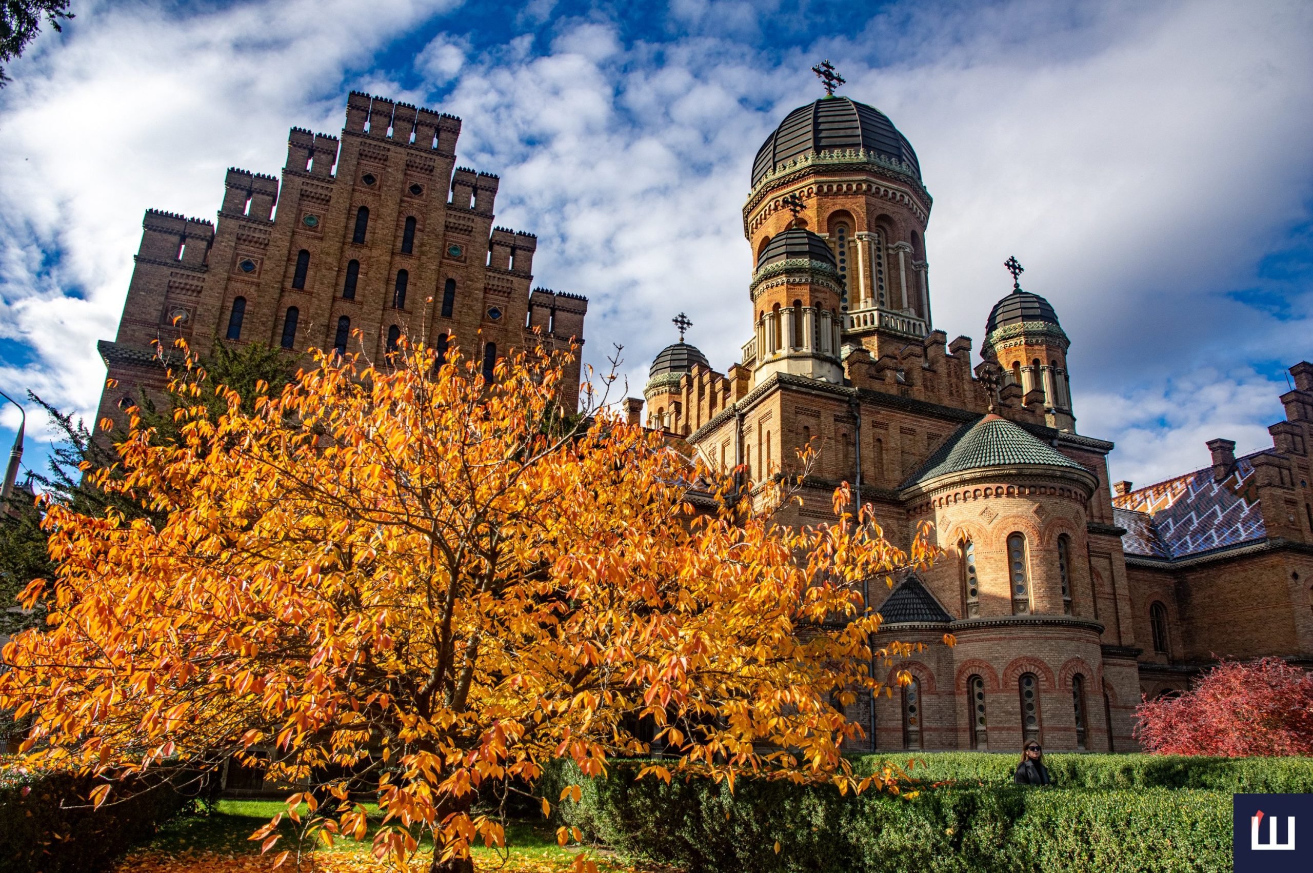 Восени територія Чернівецького національного університету імені Юрія Федьковича стає справжньою окрасою міста. Золотаве листя вкриває алею, старі стіни будівель віддзеркалюють м’яке сонячне світло, а повітря наповнене спокоєм і затишком.
