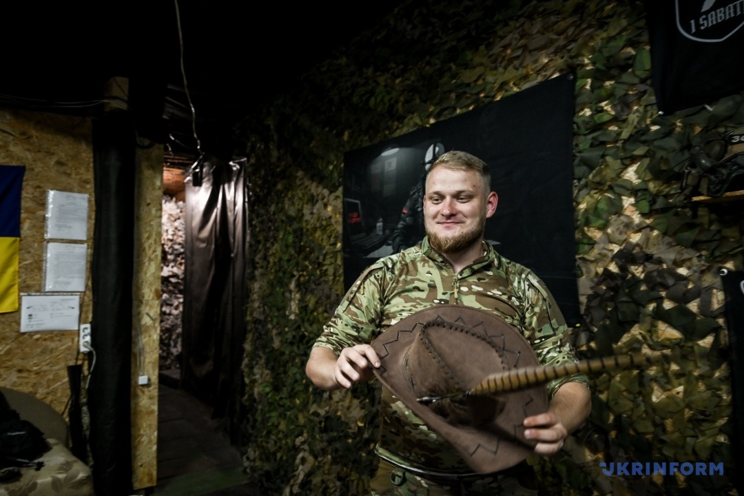 Згадую, що минулого разу запитувала у «Ковбоя» про те, чи є якась фраза, якою він підбадьорює бійців. Тоді він жартома сказав: «Всєх убіть, всьо отнять».