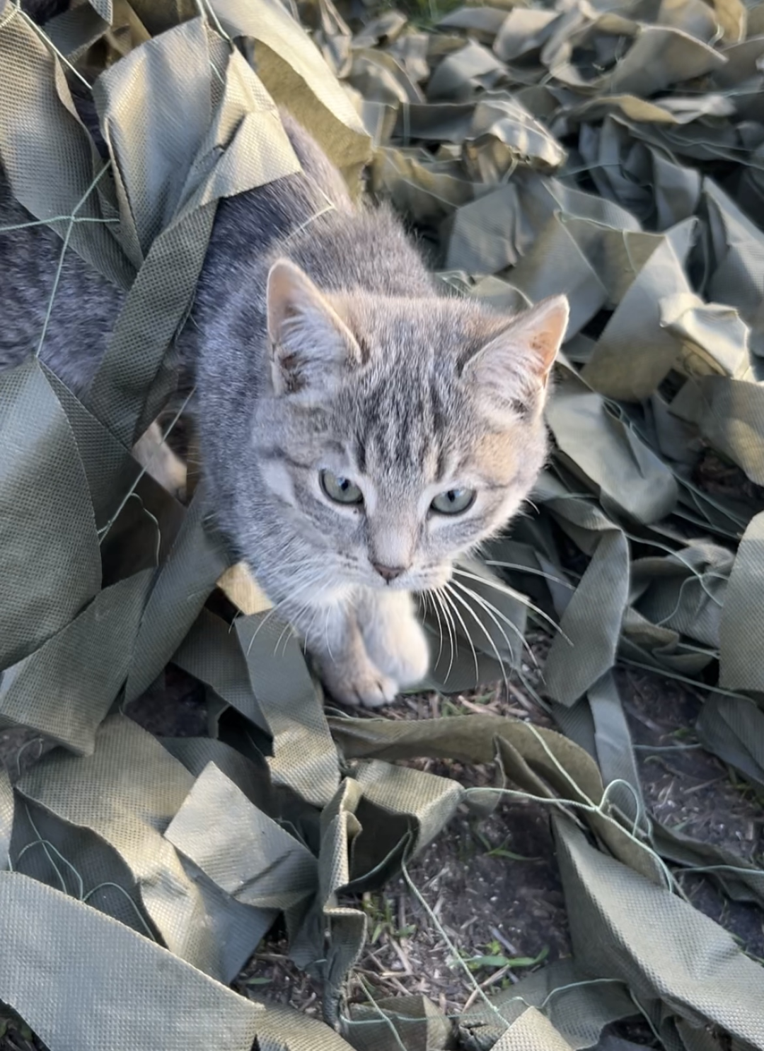 Після тренувального вильоту військові перевіряють, чи виконане завдання, і коментують, що все успішно: у потрібний квадрат умовно поцілили. Оскільки виліт не бойовий, це фіксують візуально. Після цього «допомагають» військовим маскувати дрон сіткою місцеві коти. Час наближається до вечері, тому їх зібралося навколо немало – визирають з усіх кутків. Бійці їх підгодовують, тож пухнасті точно знають, коли завітати. Частина з них – зовсім безхатня, а хтось хитрує і приходить із садиб неподалік. Тож поки ми з Дмитром заходимо у приміщення й сідаємо біля столу, розмовляємо про село.