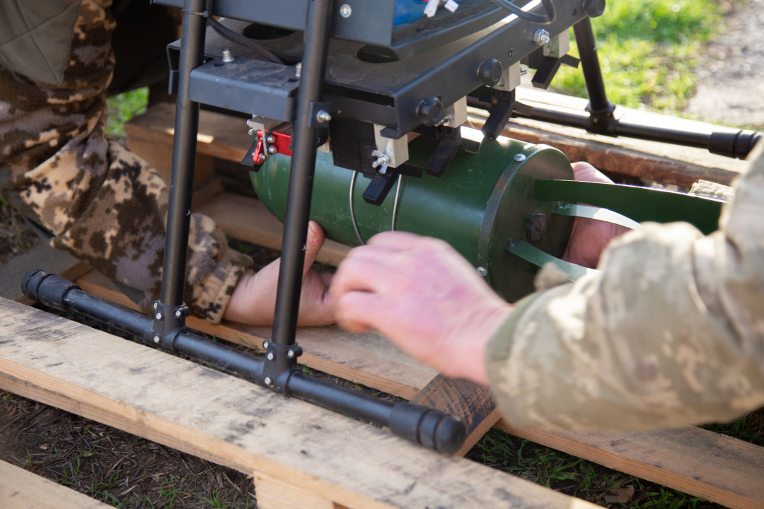 Про способи розмінування у складних умовах Дмитро розповідає просто: якщо є можливість, застосовують інженерні боєприпаси, які скидають із повітря, – під час вибуху вони й очищують ділянку. Наприклад, на варіант завдавання ураження ворогу, поки ведемо розмову, є можливість і подивитися: бійці підрозділу саме кріплять боєприпас (скид) до дрона, який відправить його у потрібний квадрат на ворожій території. Поки що виліт тренувальний, з вихолощеним боєприпасом. Водночас роботу ведуть не лише безпосередньо проти ворога чи для нашої логістики, а й для місцевих жителів, каже військовий: