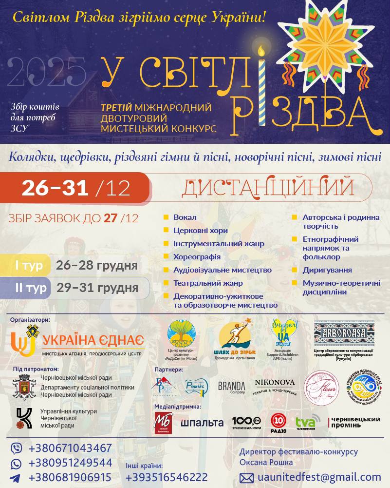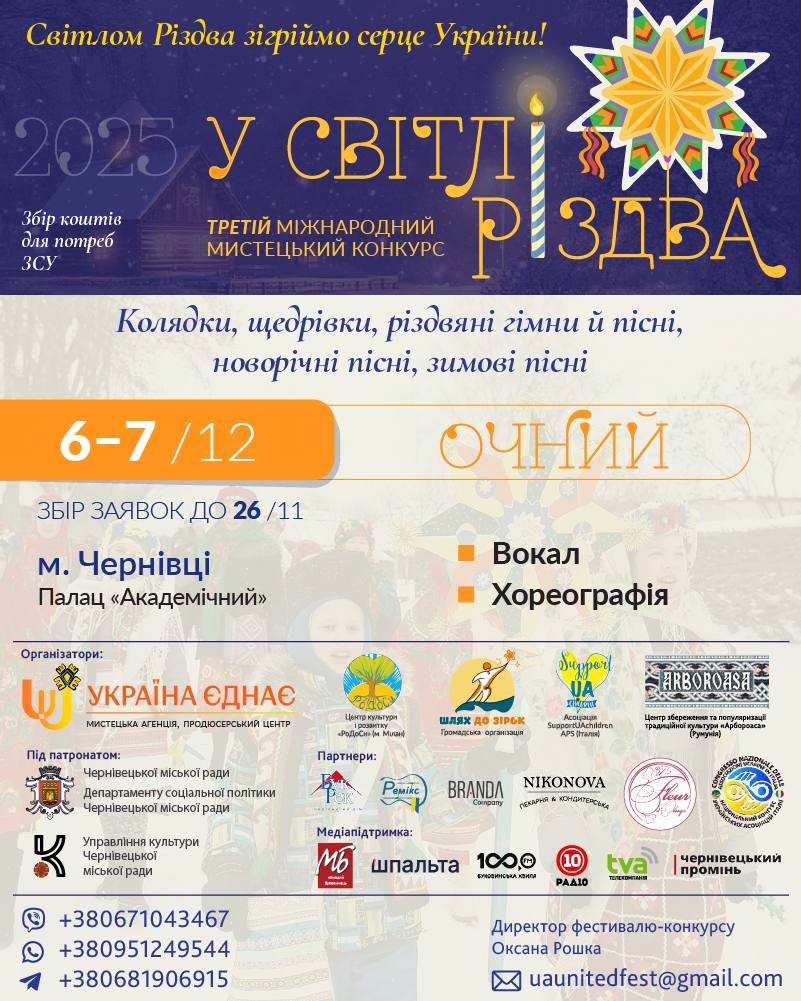 У Палаці «Академічний» у Чернівцях 6 та 7 грудня відбудеться третій міжнародний мистецький конкурс «У світлі Різдва».