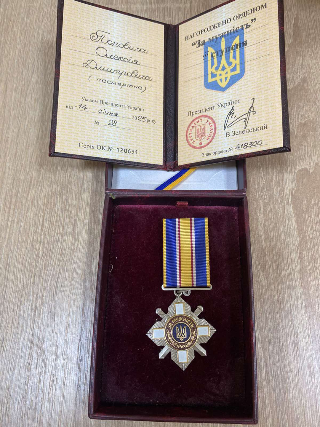 Посмертно Олексія Поповича нагороджено орденом «За мужність» III ступеня.