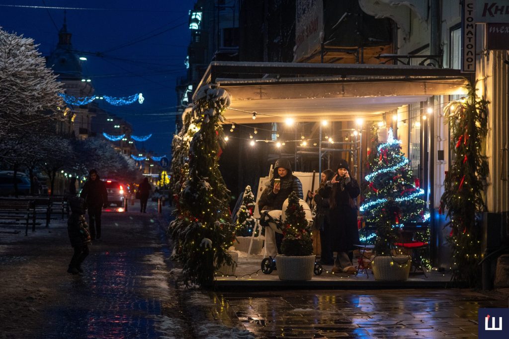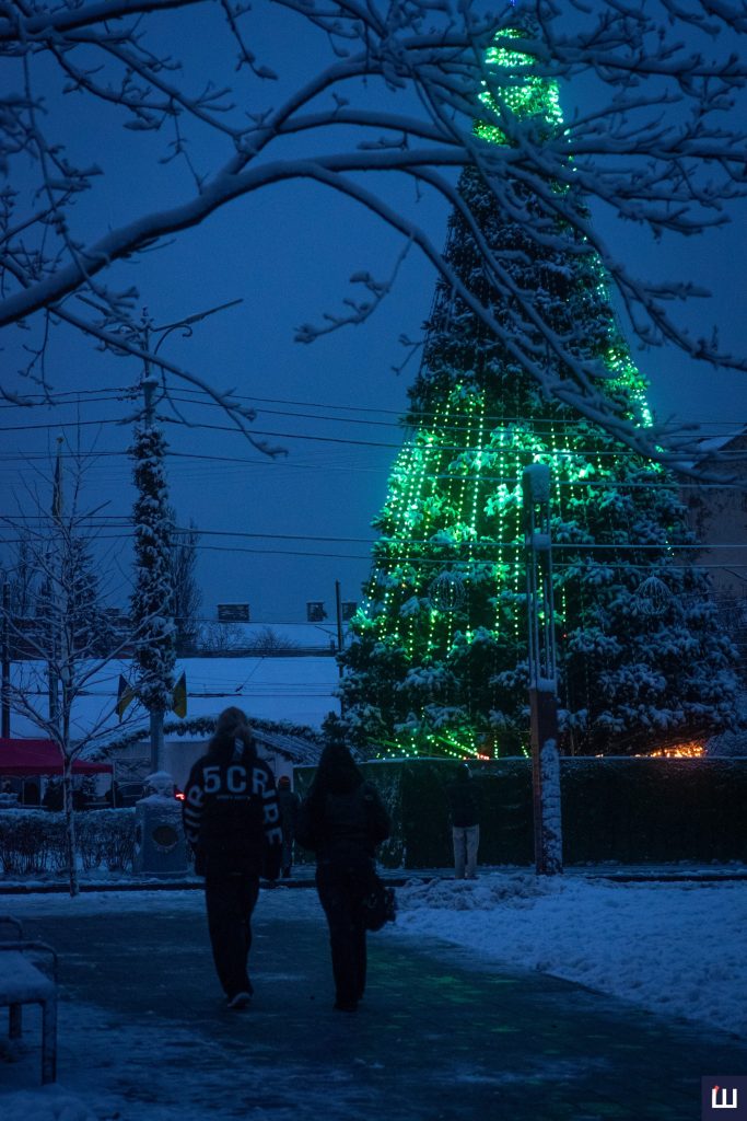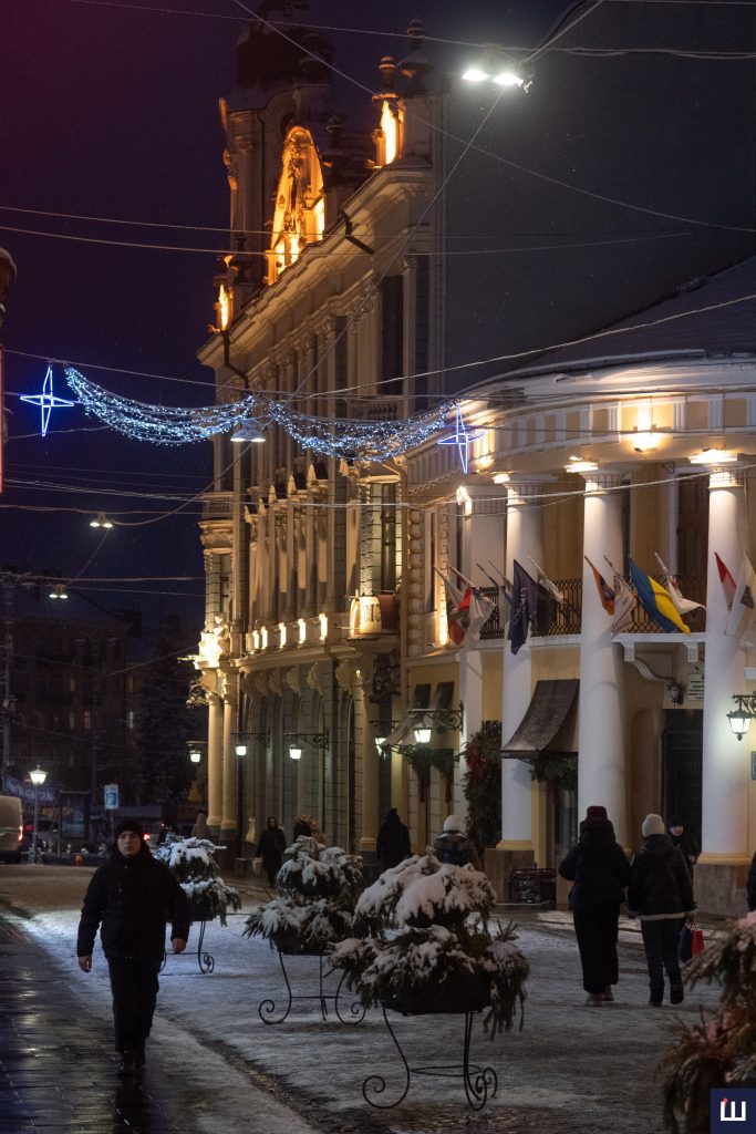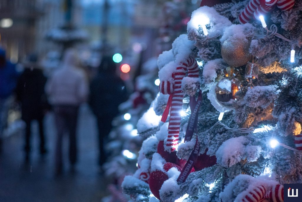 Усюди панує атмосфера свята: пахнуть хвоєю прикрашені ялинки, горять яскраві вогники, блимають гірлянди, а ще випав сніг. Святкову атмосферу міста зазнимкував фотограф «Шпальти».