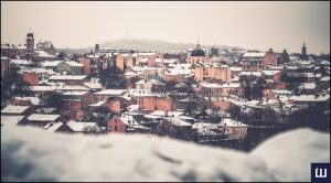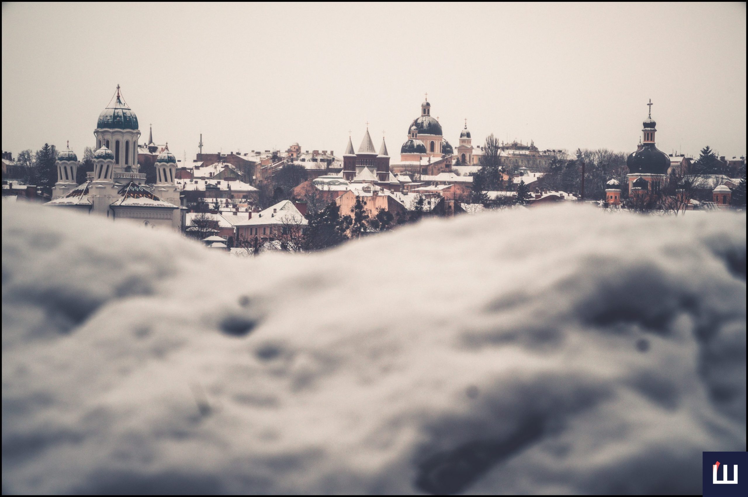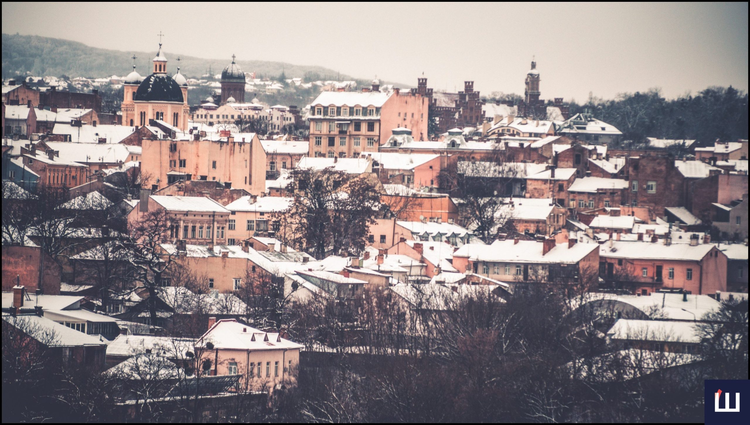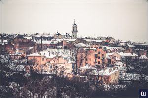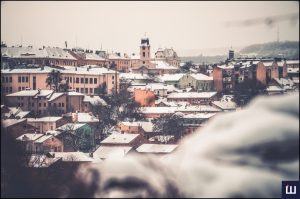 Чернівці занурилися у справжню зимову казку. Після снігопаду місто вкрилося білим покривалом, і особливо чарівно виглядають дахи старовинних будинків, церков і вулиць, які можна побачити з висоти місцевої гори «Аврора».