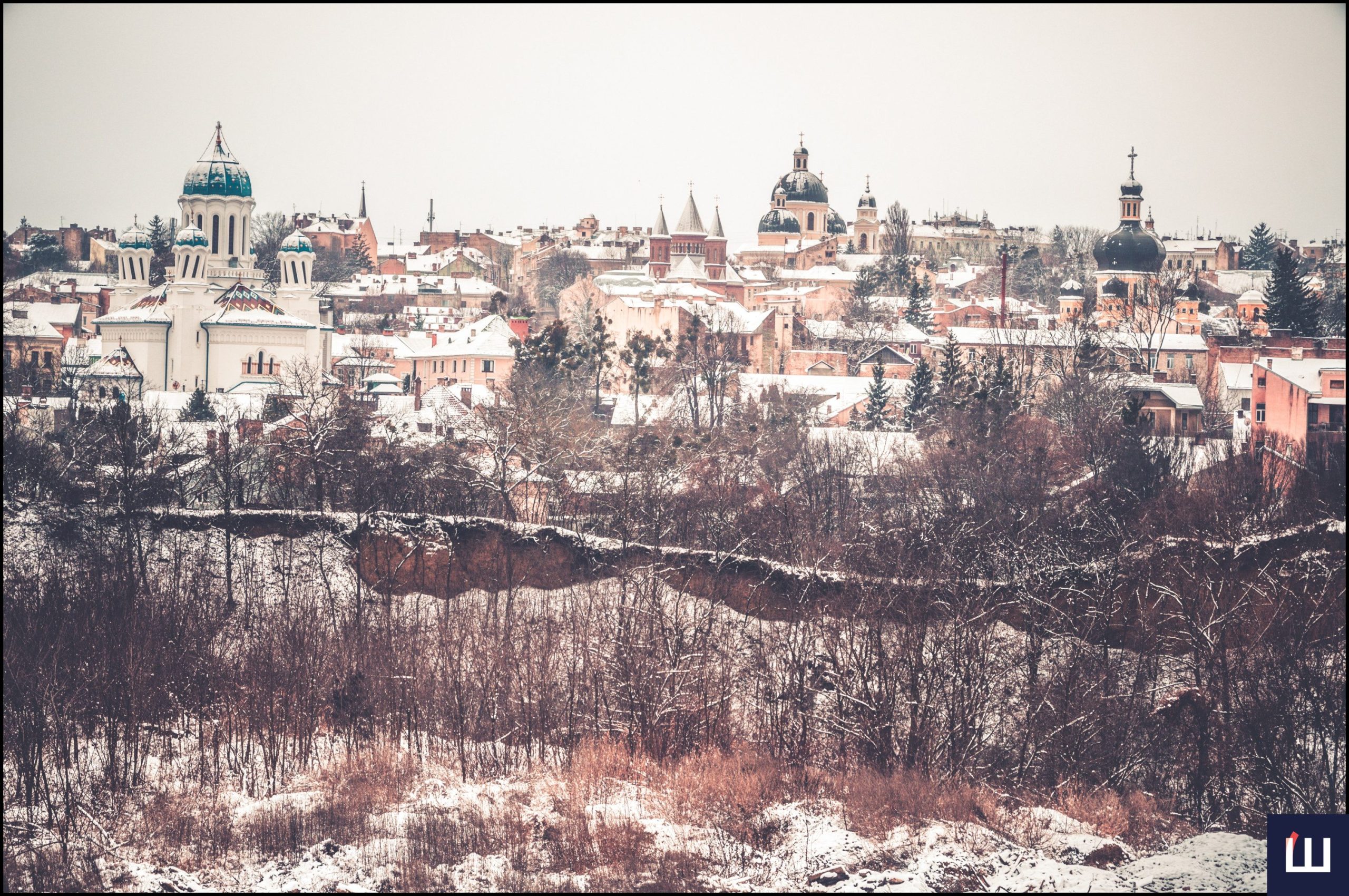 Саме звідти відкривається панорамний краєвид на місто, що дає змогу побачити Чернівці у всій зимовій красі. З висоти видно, як сніг підкреслює архітектурні деталі будівель і створює відчуття тиші та спокою.