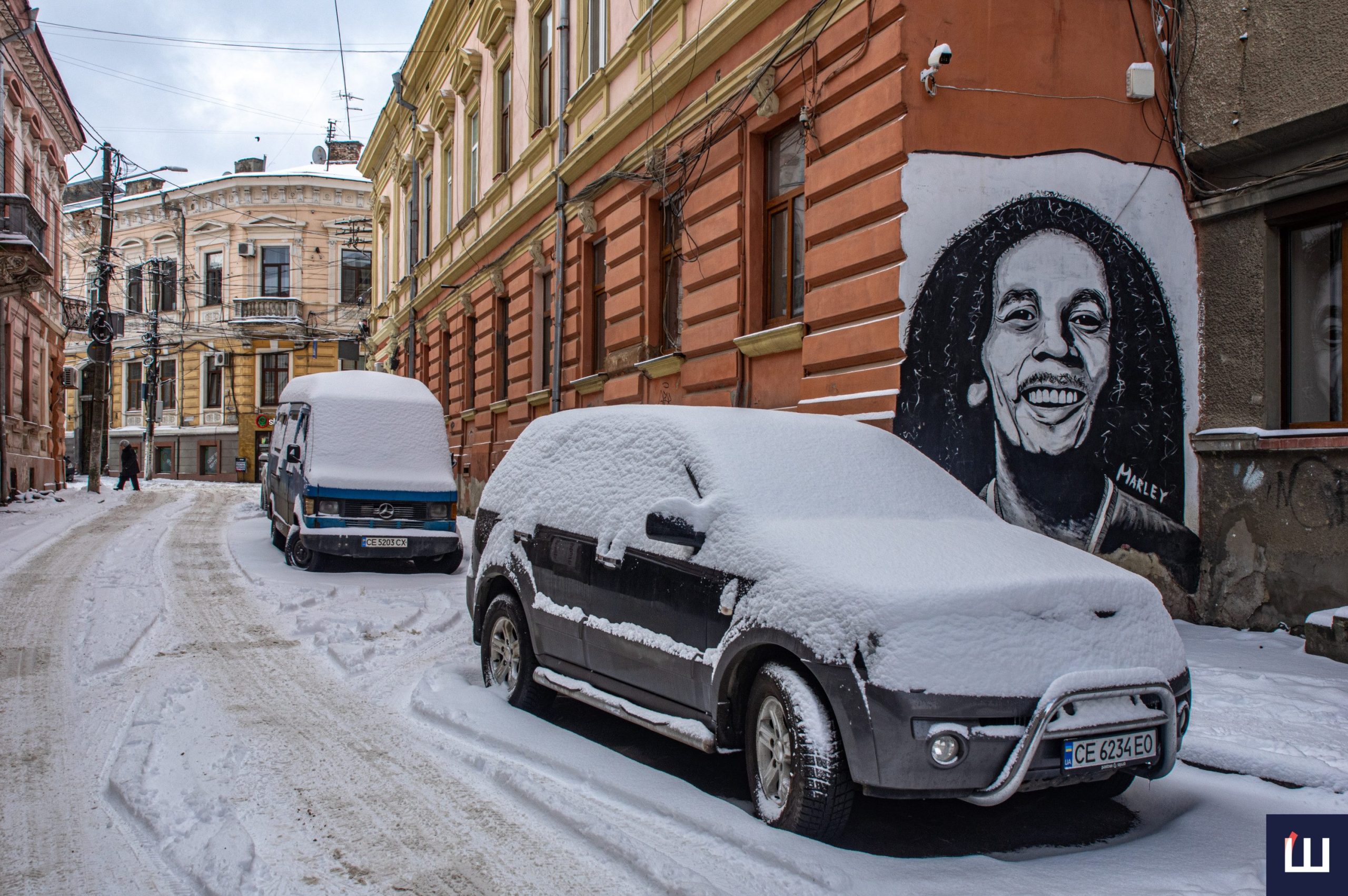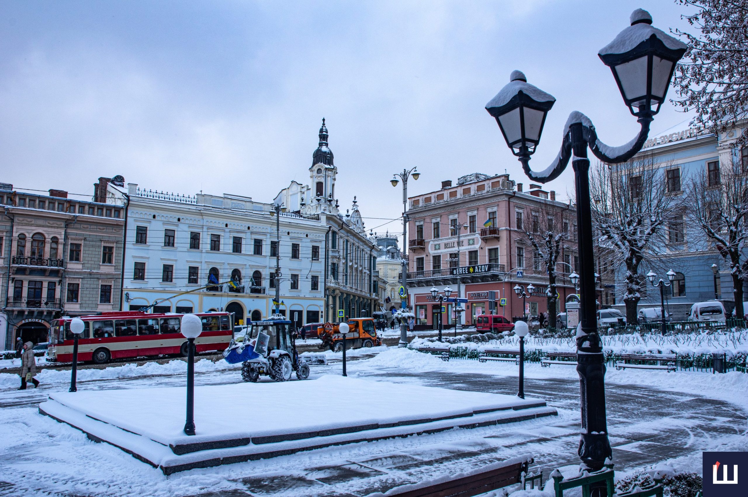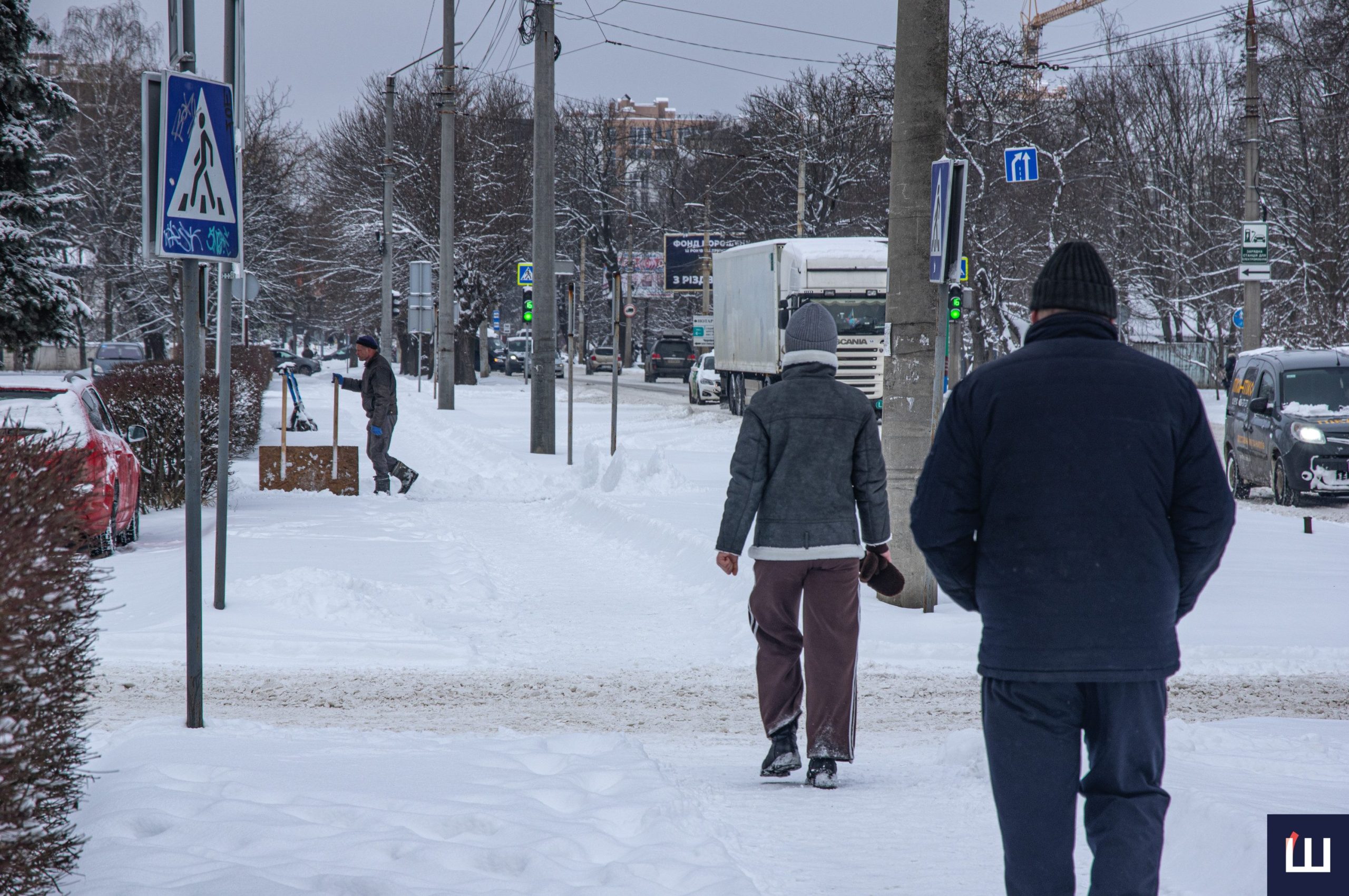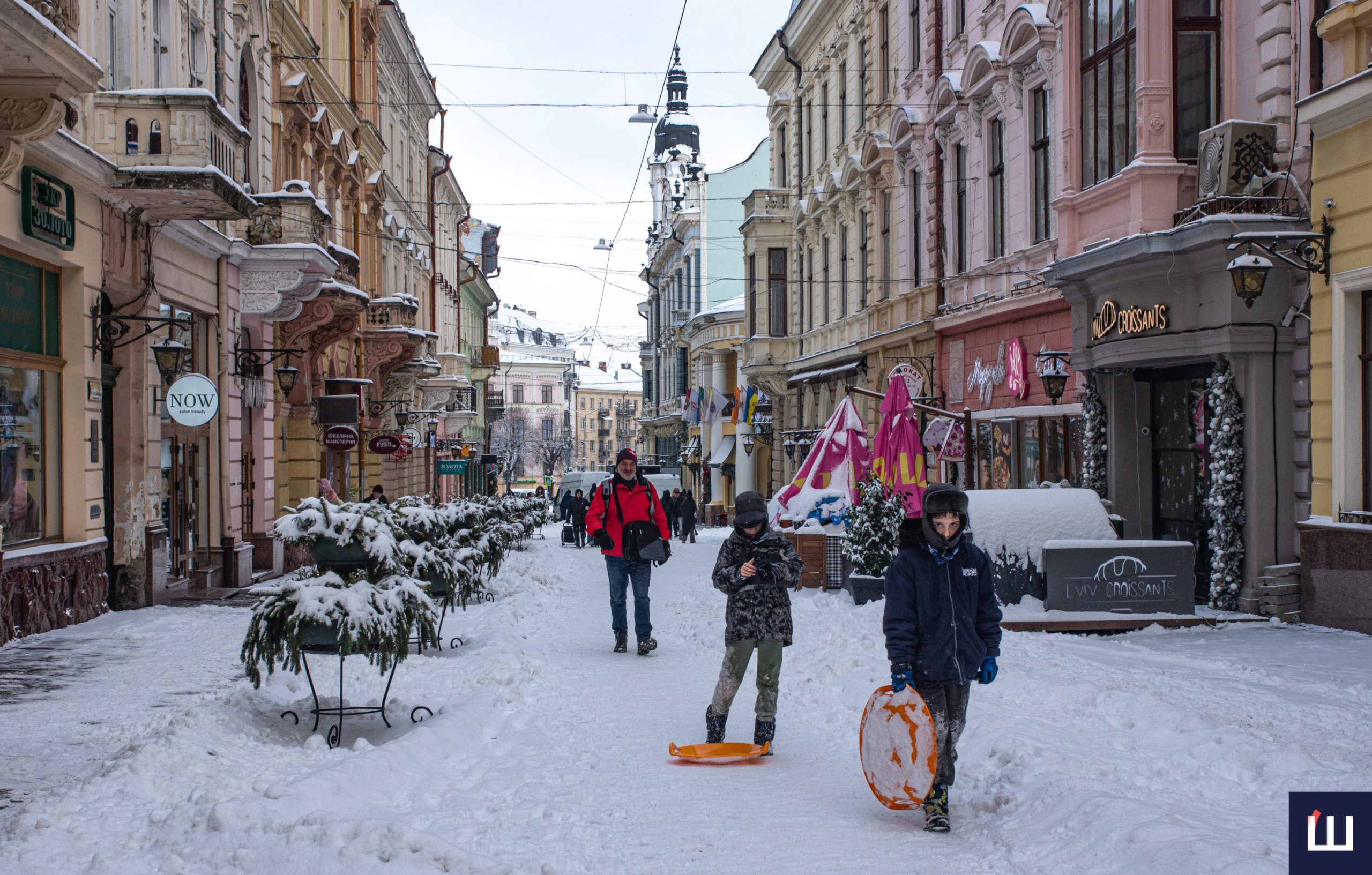 На вулицях міста багато людей. Життя триває, чернівчани поспішають у своїх справах, діти катаються на санчатах. Попри сніг і мороз, місто залишається активним і рухомим.