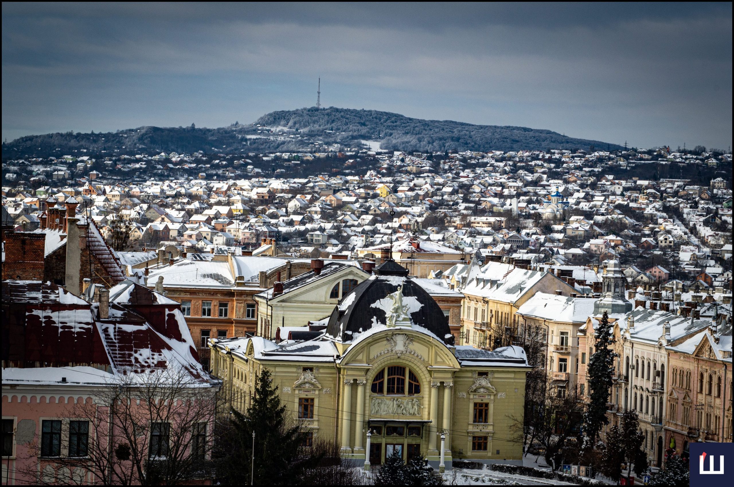 Сьогодні Чернівці виглядають по-особливому: засніжені дахи, вулиці та житлові квартали. Історичний центр міста, старі райони і схили вкриті снігом.