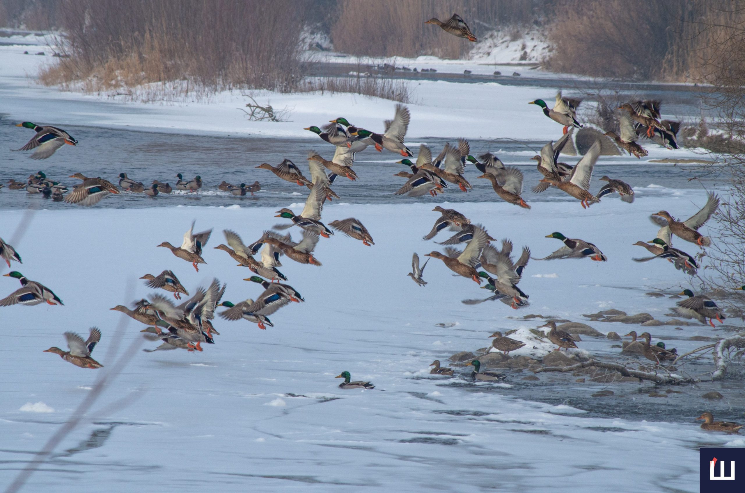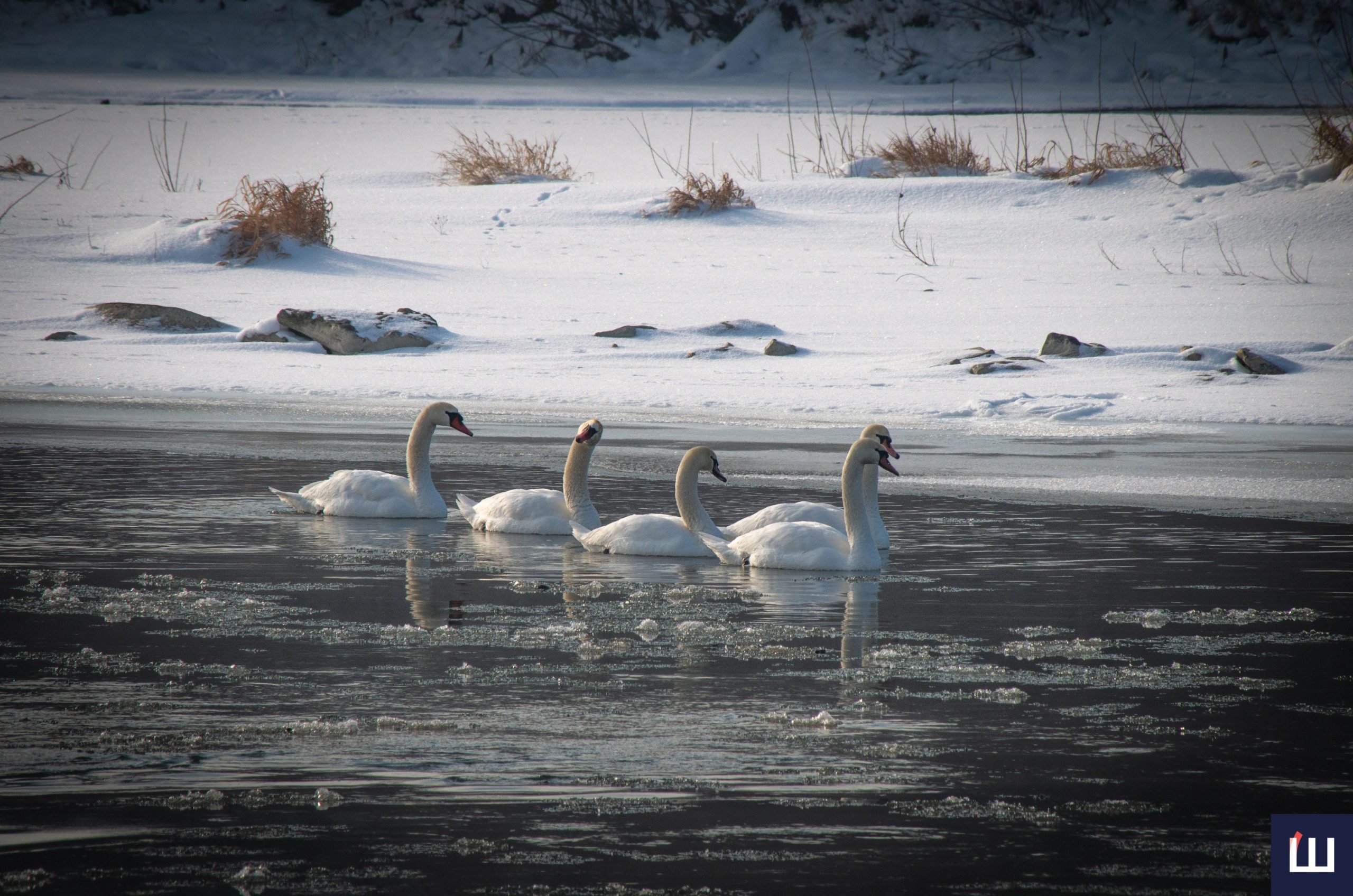 Фотограф «Шпальти» Тарас Піц зазнімкував білосніжних лебедів та диких качок, які попри мінусову температуру мирно ніжилися на сонці у воді, на островах і на берегах річки.