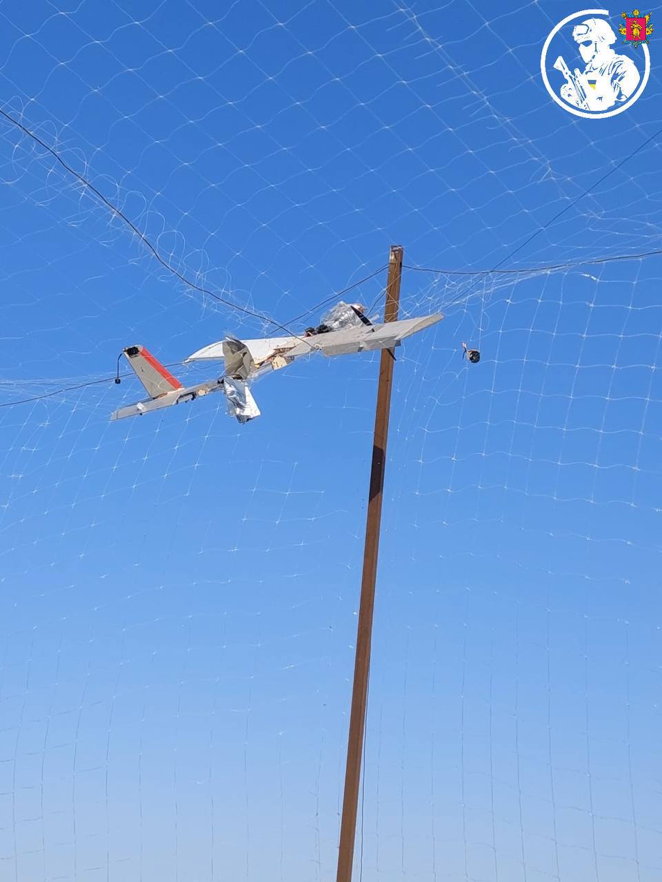 Очільник Запорізької ОВА Іван Федоров показав в своєму Телеграмі фото, на яких видно дрон «Молнія», що застряг у сітці, передає Укрінформ.