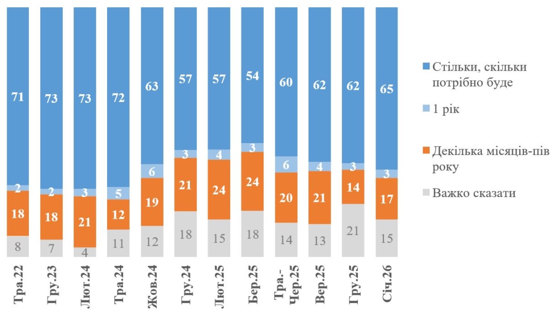 Лише 20% українців очікують закінчення війни хоча б у першій половині 2026 року