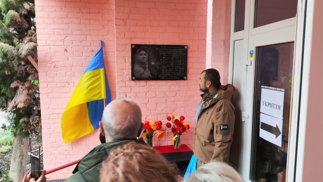 А 17 квітня на фасаді навчального закладу з’явилася меморіальна дошка Олександру Трухану. Почесне право відкрити її було надано односельцю, воїну-Захиснику Миколі Швецю.