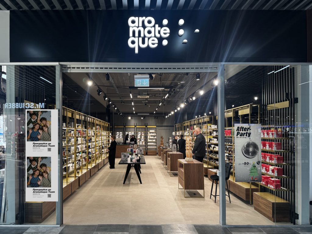 Новий магазин пропонує розширену селекцію парфумерних та косметичних брендів, а також персоналізований сервіс, що є невід’ємною частиною підходу Aromateque. Простір оформлений у фірмовій естетиці бренду, що підкреслює головне — аромати та мистецтво взаємодії з ними. У новій локації представлено колекцію світових нішевих брендів, серед яких: Kilian Paris, Maison Francis Kurkdjian, Marc-Antoine Barrois, Juliette Has A Gun, Clive Christian, Liquides Imaginaires та інші ексклюзивні бренди, доступні лише в Aromateque.