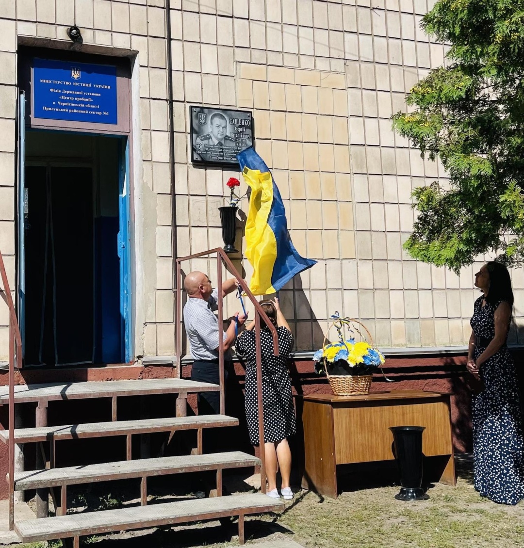 Віталіна Миколаївна каже, що на початку великої війни колегам з відчутними проблемами оформлювали бронювання. І на її керівника бронь прийшла саме тоді, коли він перебував у процесі мобілізації в ЗСУ. За бажання міг і не служити в армії, але відмовився чіплятися за пільгу й пішов воювати. Колеги підтримували зв'язок, поки колишній капітан внутрішньої служби їздив на бойові як рядовий водій-сапер. Тепер про Героя на щиті землякам нагадує меморіальна дошка на офісі пробації.