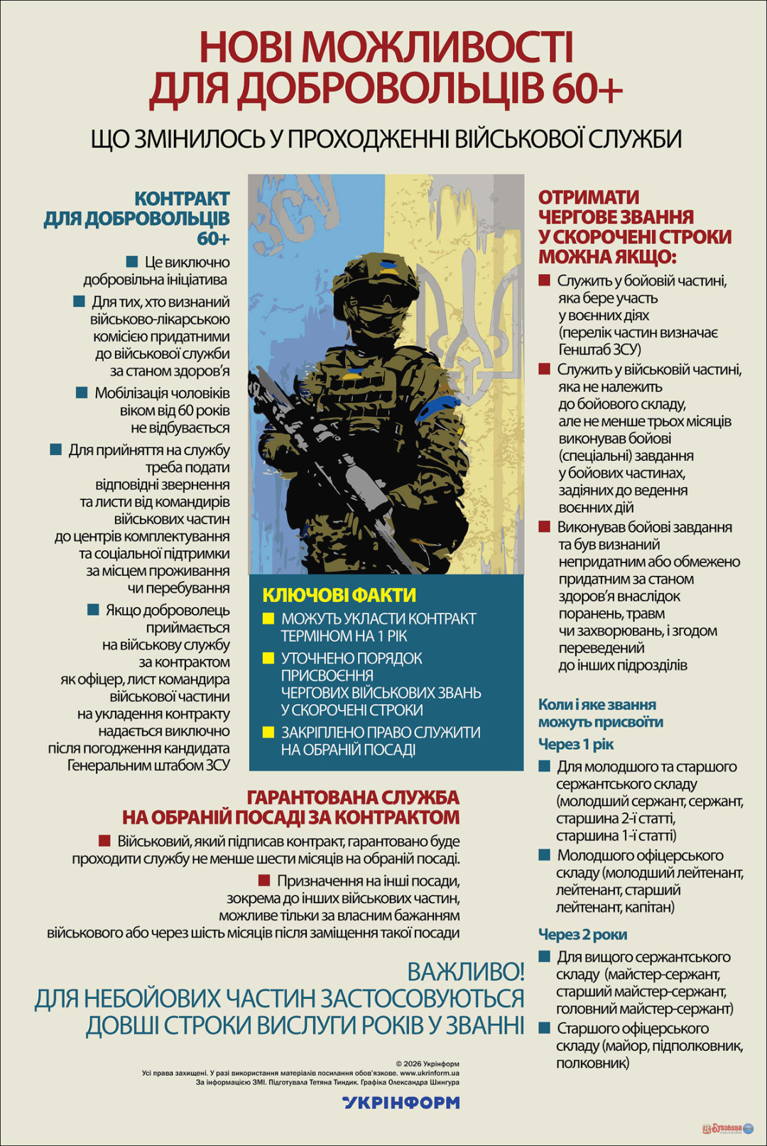 Нові можливості для добровольців 60+ 25.02.2026 12:20 Укрінформ Що змінилось у проходженні військової служби За інформацією ЗМІ     Новини з передової