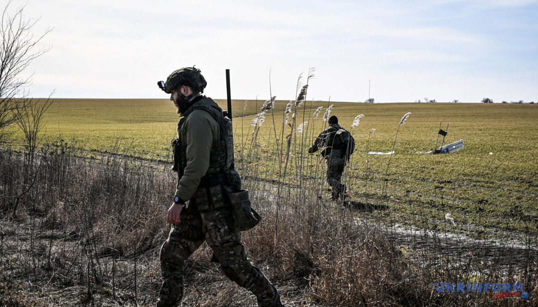 Українські війскові біля модуля УМПК від авіабомби, яка впала під впливом РЕБу