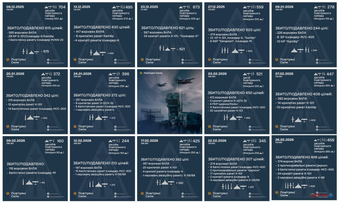 За грудень-січень ворог здійснив 7 масованих ударів із застосуванням ракет та дронів різних типів. Протягом лютого інтенсивність атак зросла удвічі – Україна витримала ще сім масштабних атак.