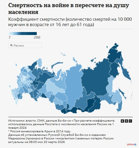 Про це йдеться у спільному матеріалі російської служби BBC, «Медіазони» та команди волонтерів, підготовленому на основі відкритих даних, передає Укрінформ.