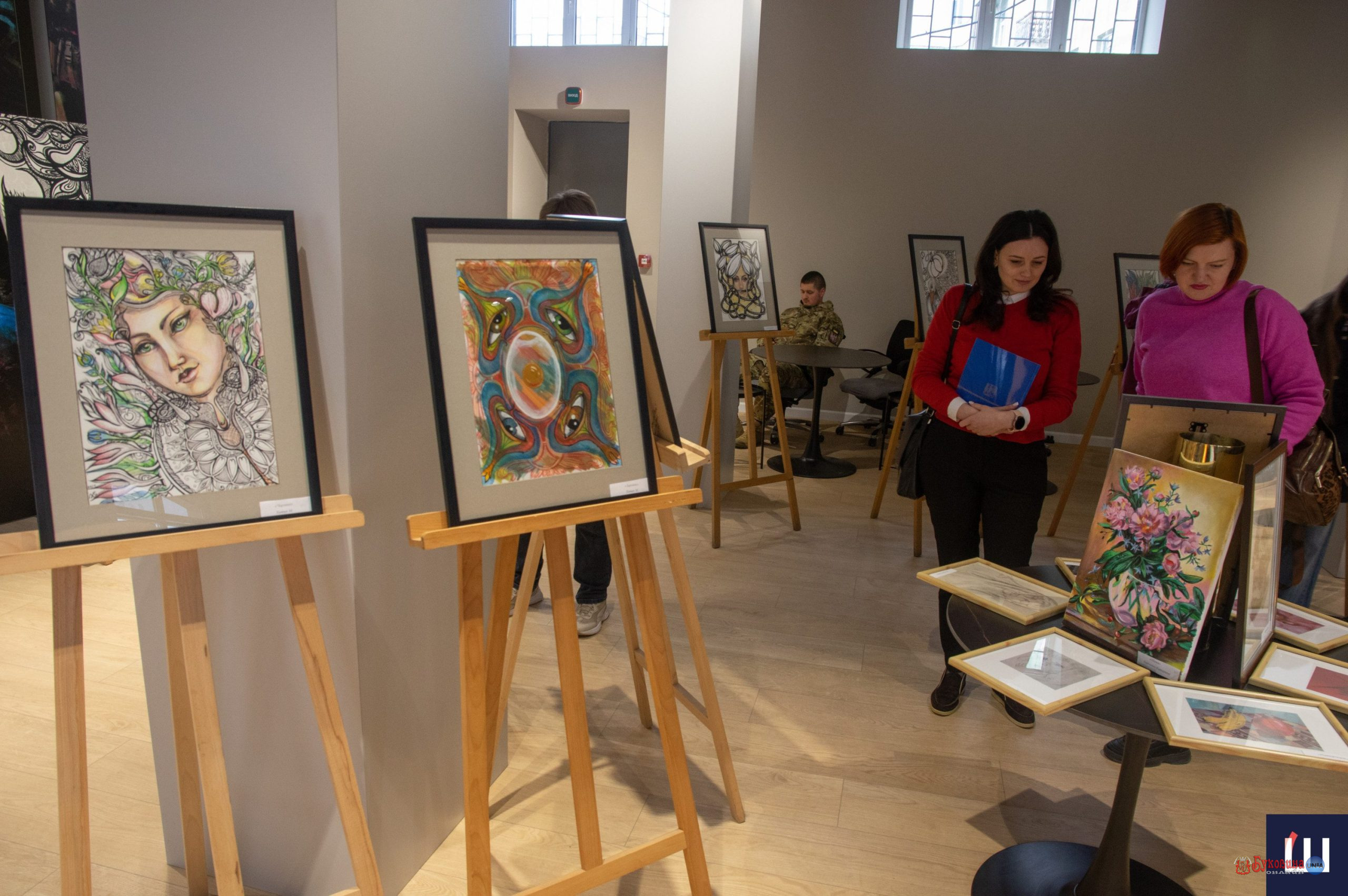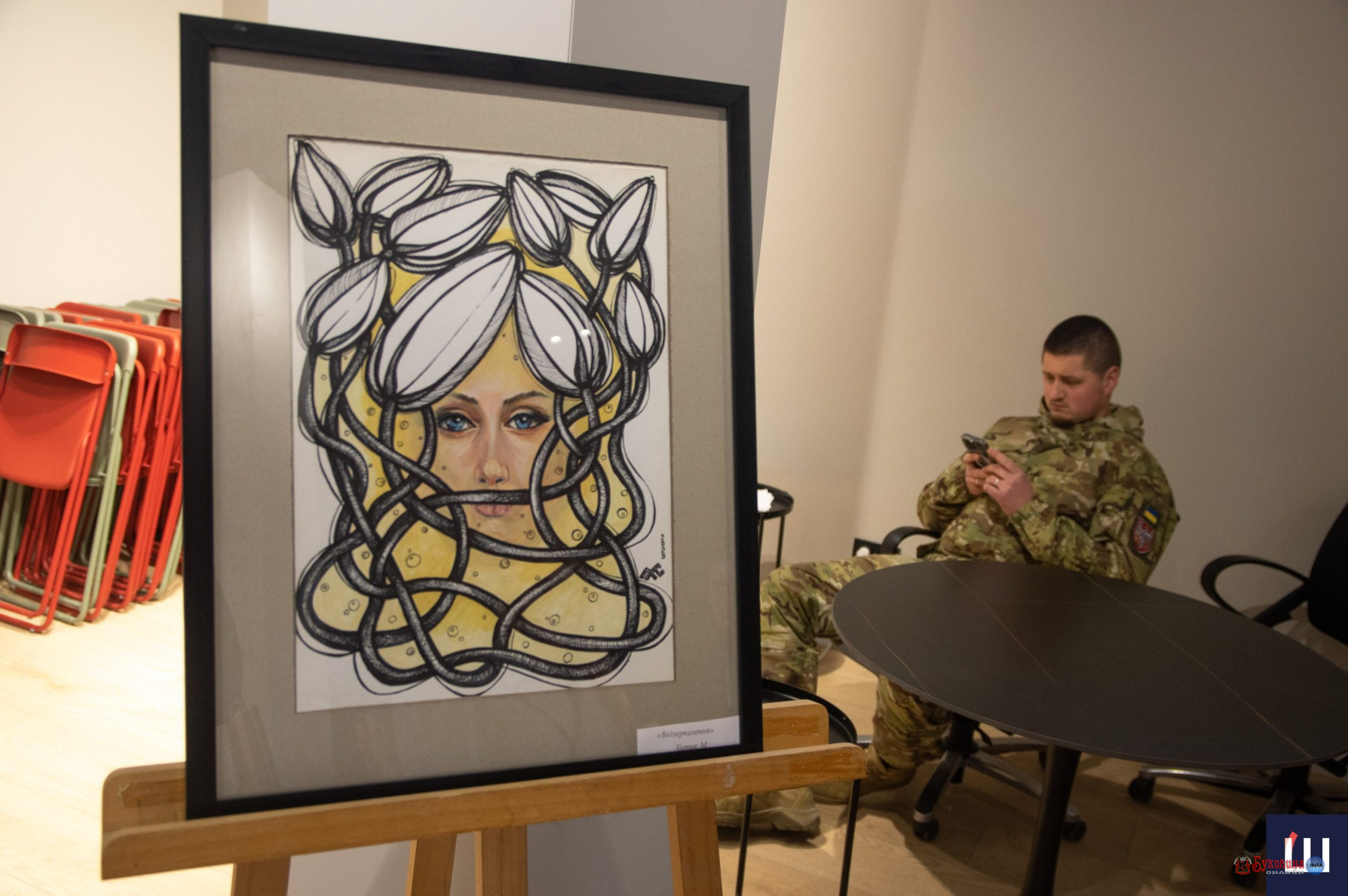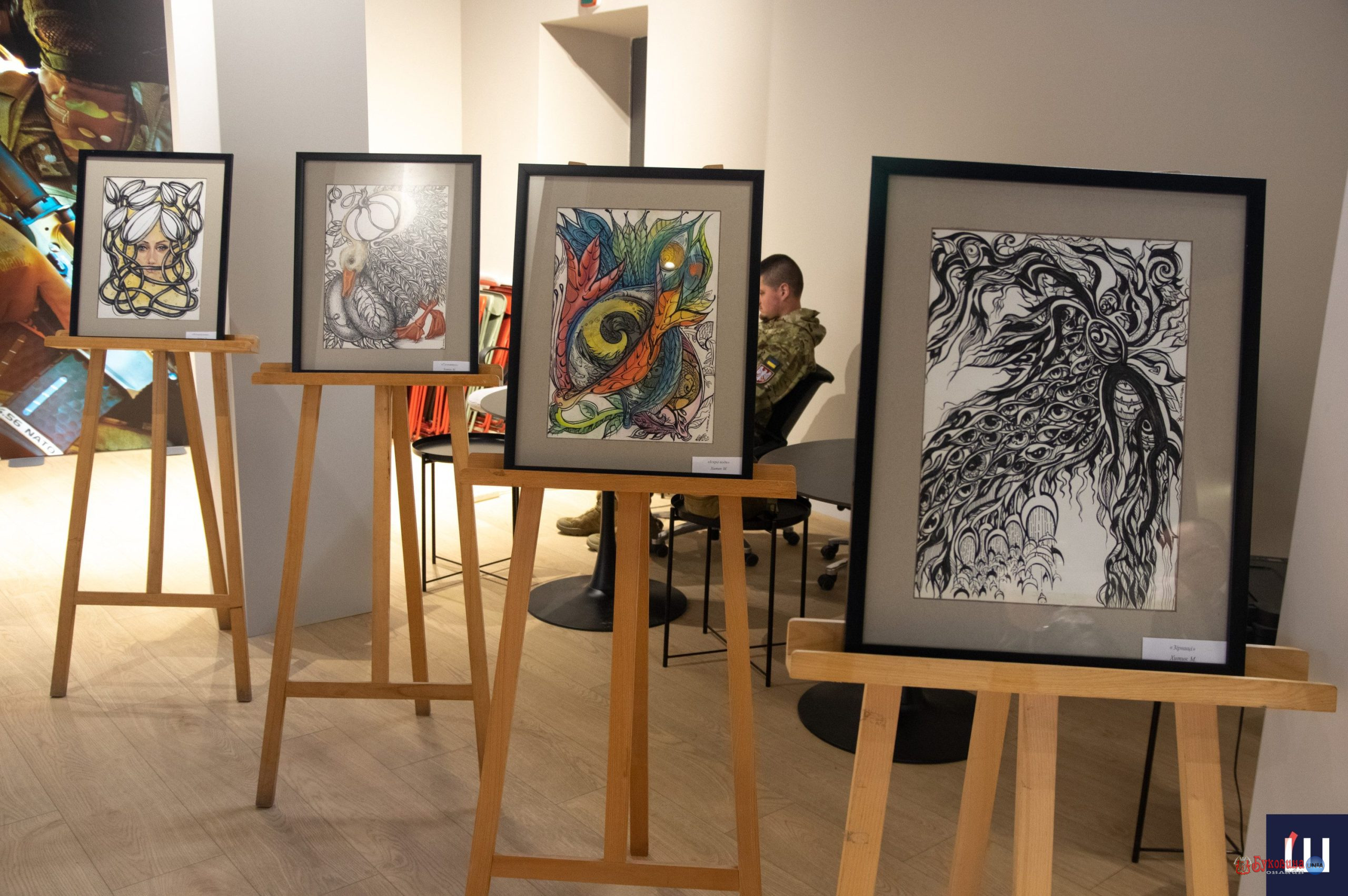 У «Хаб 82» у Чернівцях сьогодні, 27 березня, відкрили благодійну виставку графічних робіт мисткині Мар’яни Хитик «Подих української весни».