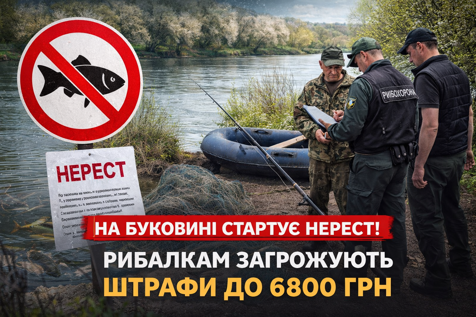 На річках Чернівецької області з 1 квітня офіційно стартує нерестовий період — час, коли рибі дають можливість відновитися. Водночас для рибалок це означає жорсткі обмеження та серйозні штрафи.