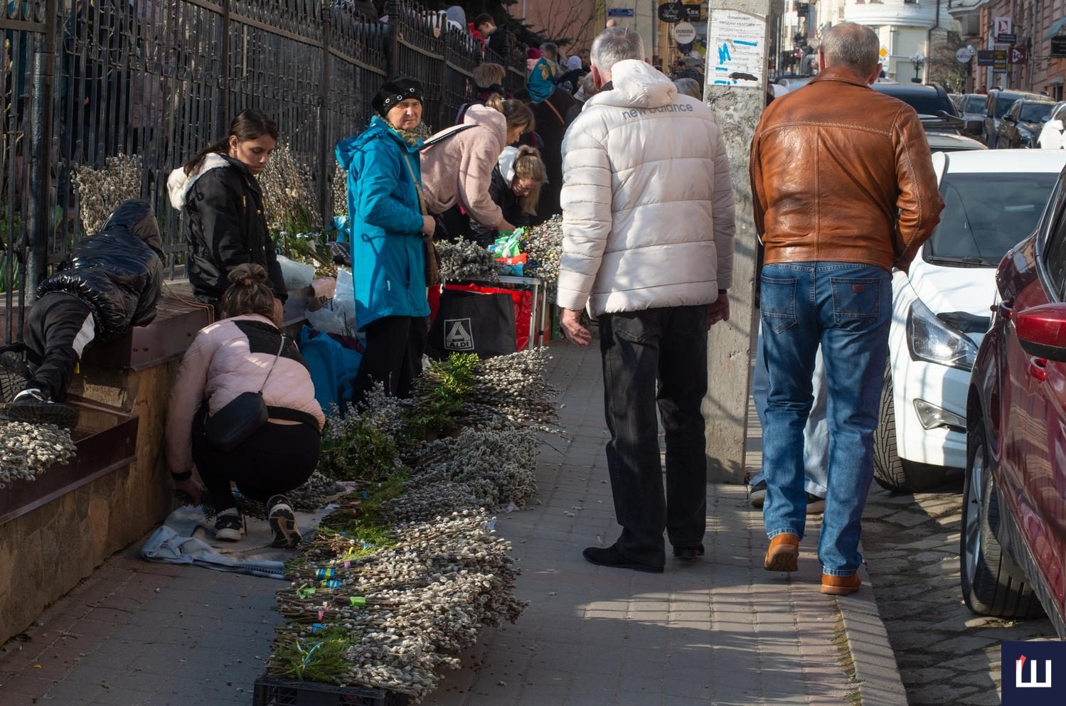Ті, хто не встиг вчора придбати шутку, змогли купити її сьогодні. Від ранку на вулиці Ольги Кобилянської, на обочині Руської, біля храмів, тривала торгівля вербовими галузками.