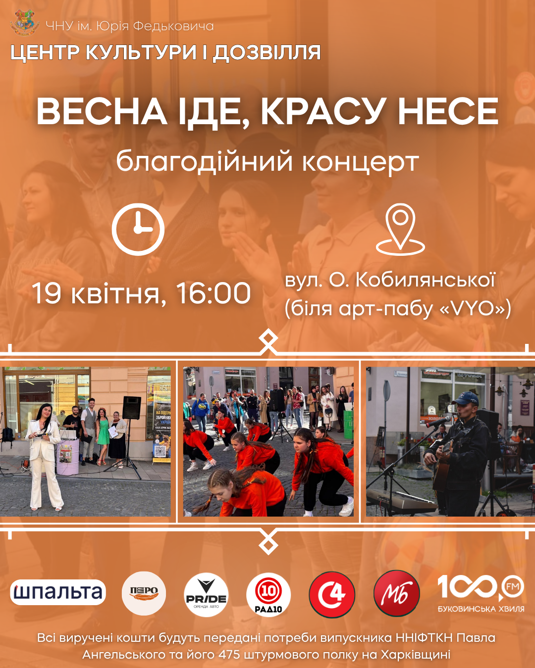 Концерт розпочнеться о 16:00 поблизу арт-пабу «VYO». Для гостей підготували живе виконання українських і світових хітів, танцювальні виступи та атмосферу весняного міста.