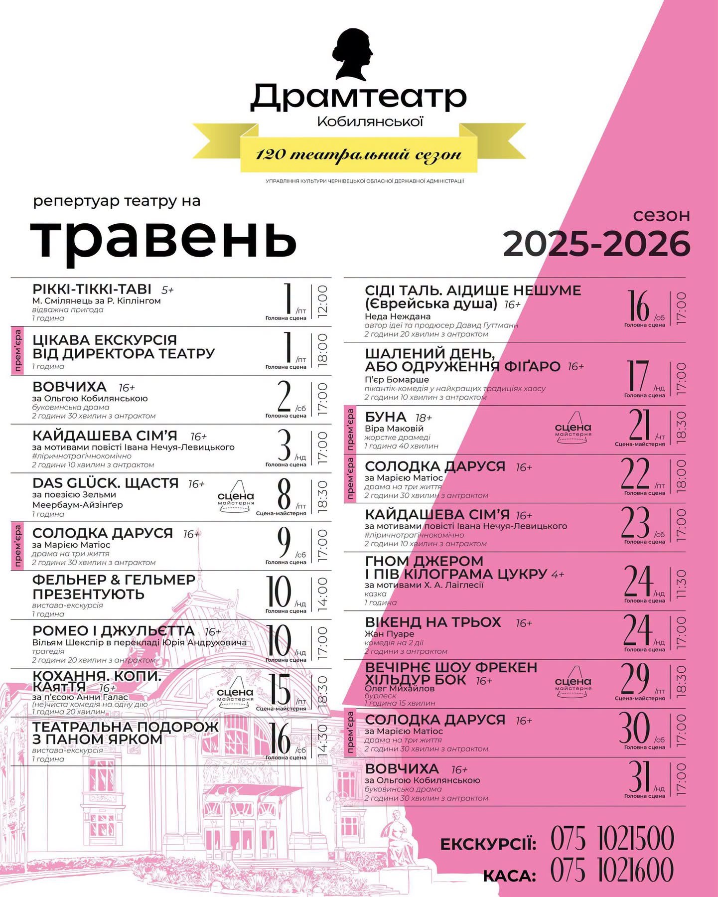 Дві прем’єри та екскурсія від директора: у Чернівецькому муздрамтеатрі представили афішу на травень