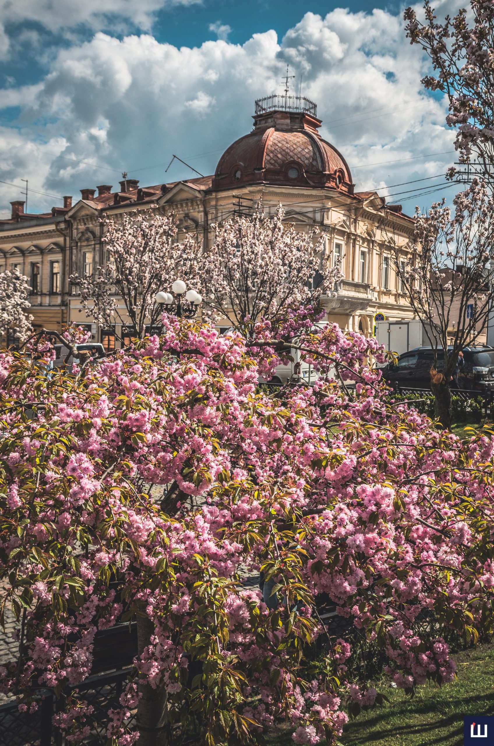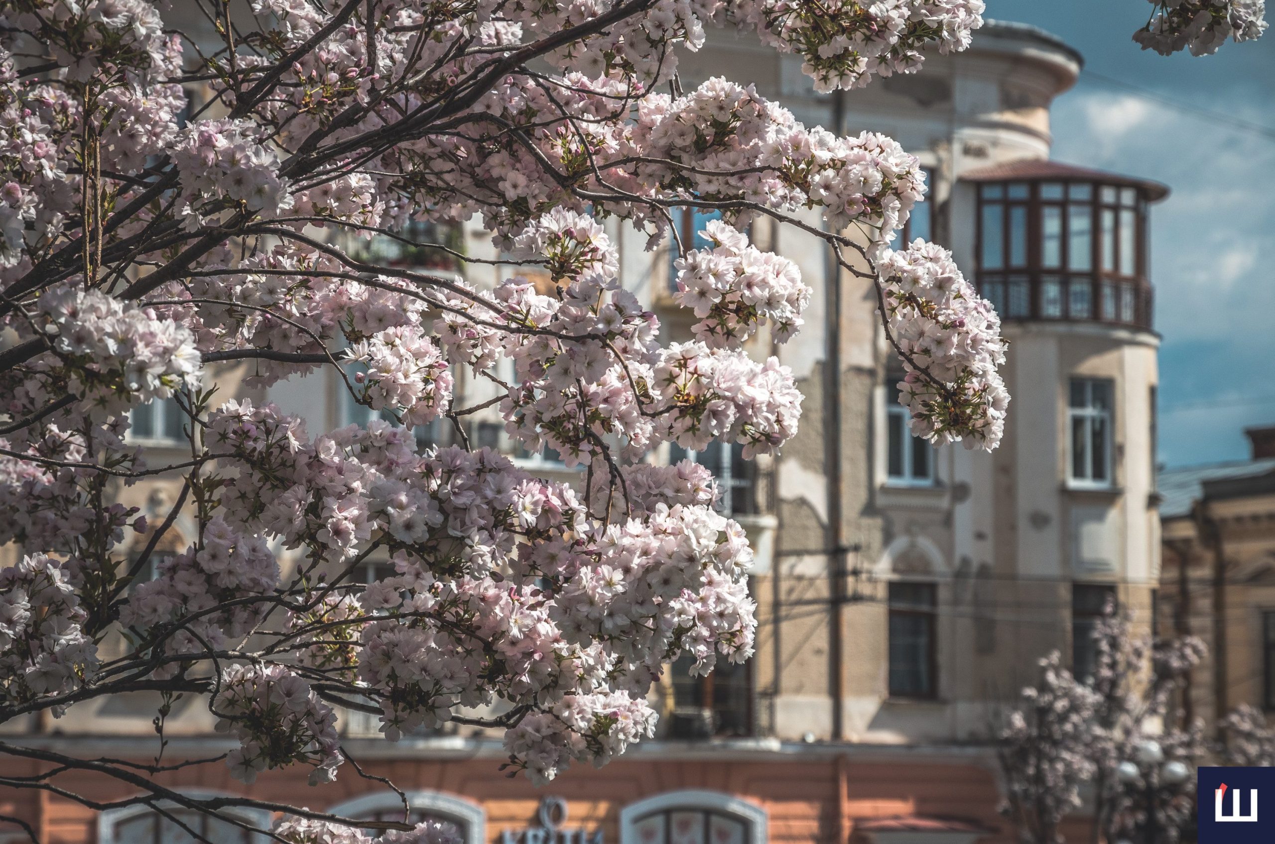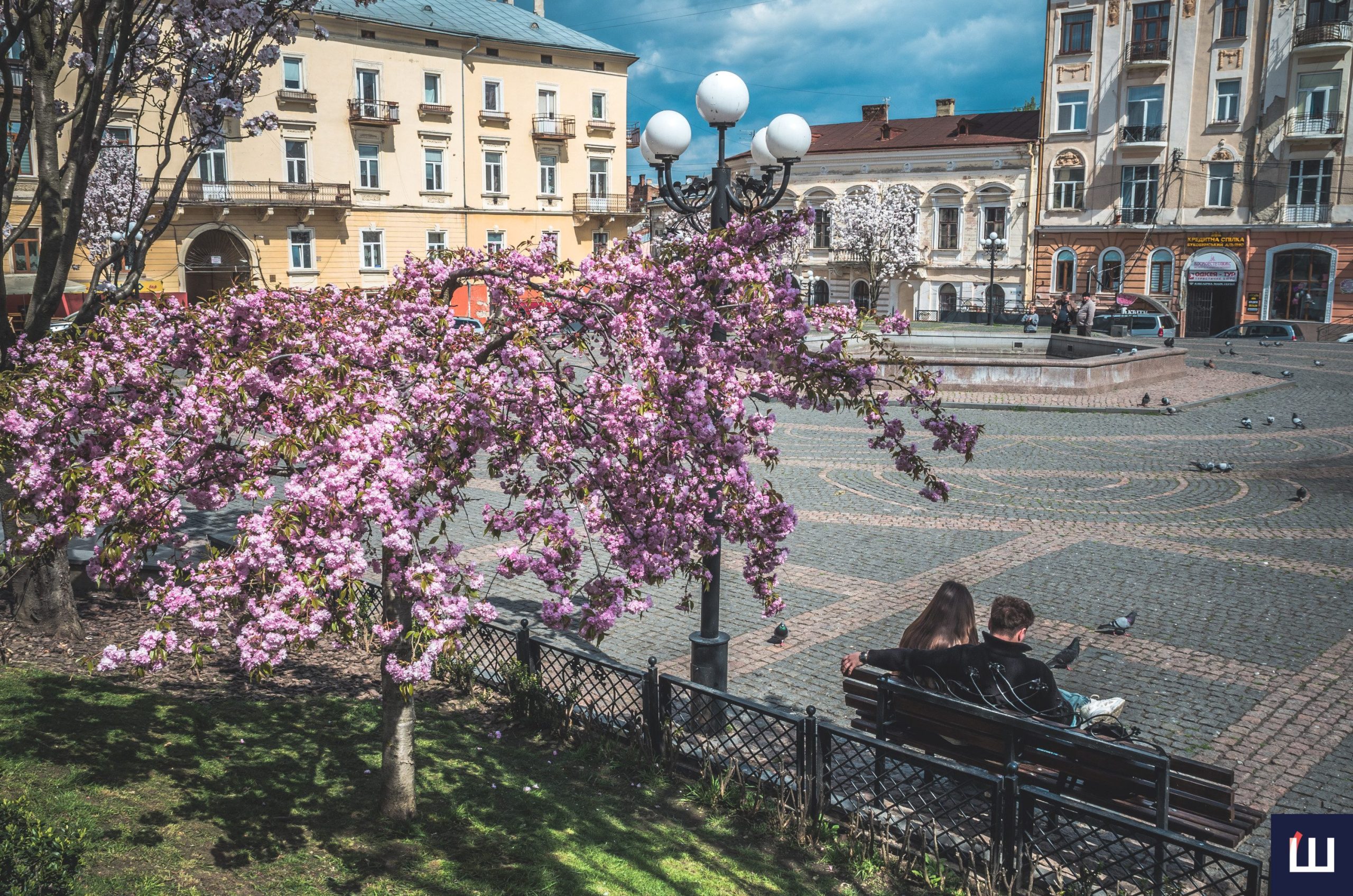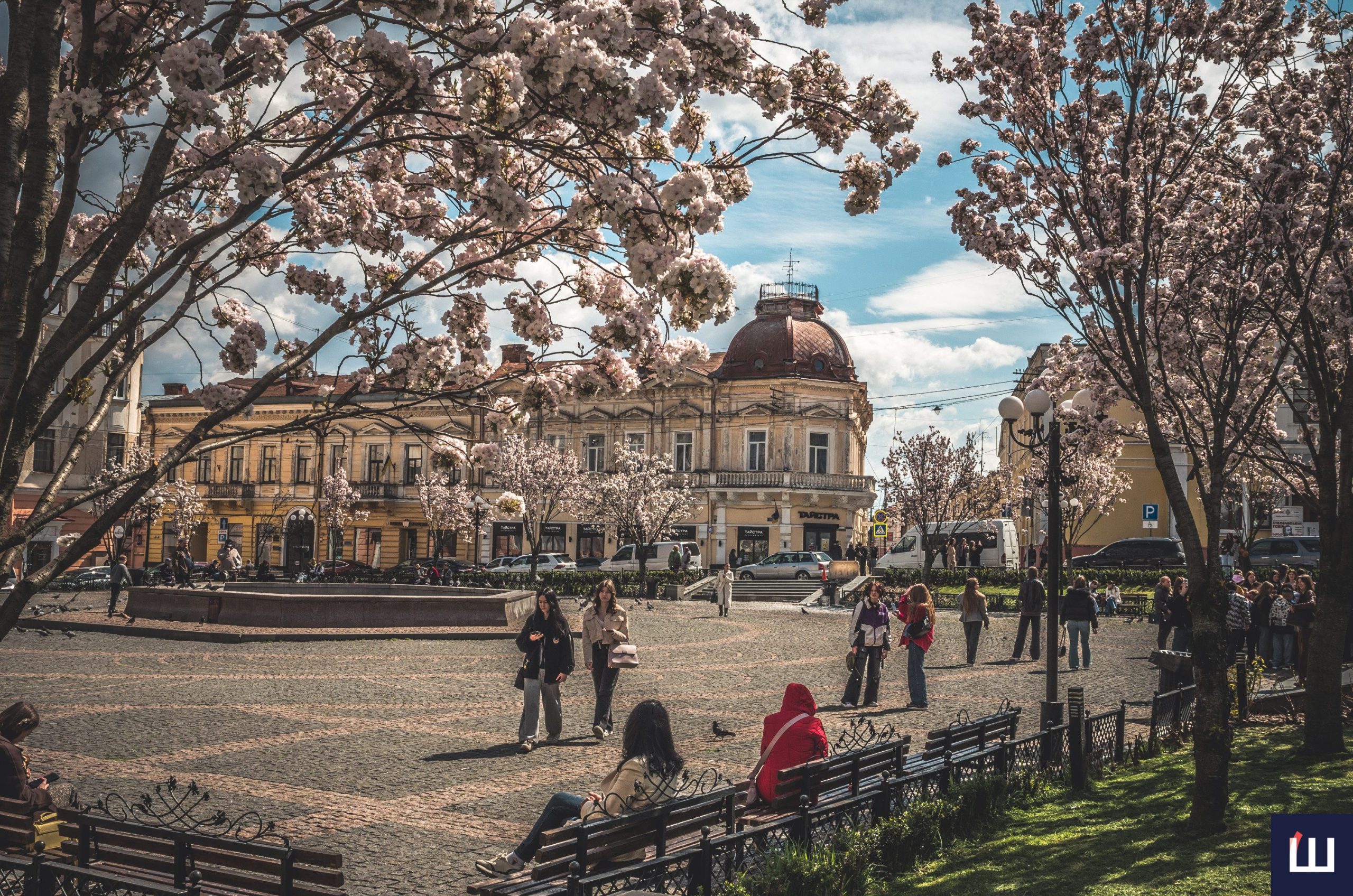 Сакури розквітли на площі Філармонії у Чернівцях: атмосферна локація у місті. Фото